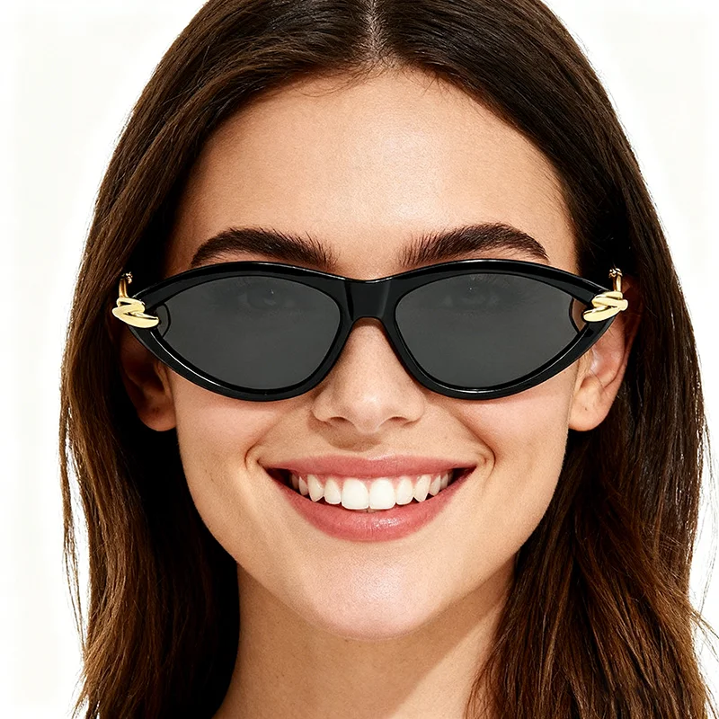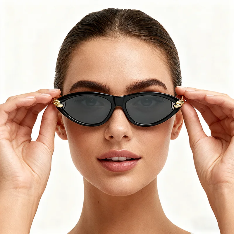 - Design élégant et tendance avec cadre en métal et style "œil de chat"