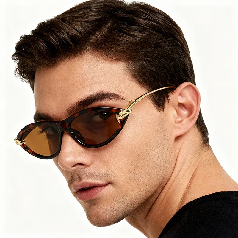 Nouvelle marque Sexy lunettes de soleil œil de chat femmes mode luxe métal petit cadre lunettes de soleil dames rétro Vintage léopard lunettes élégantes