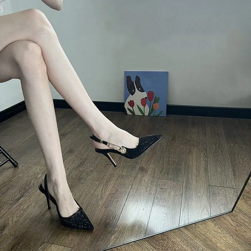 Nouvelle mode de luxe femmes sandales à talons hauts polyvalent élégant mode couleur unie vêtements d'extérieur doux talon mince sandales décontractées |
