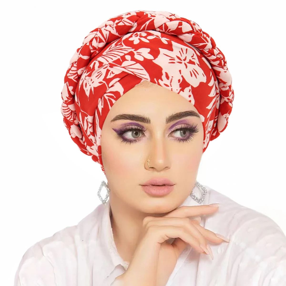 Nouvelle tresse Hijabs femmes croix front imprimé fleuri femme musulmane Turban pour fête élégant islamique bandeau élastique Hijab Bonnets |
