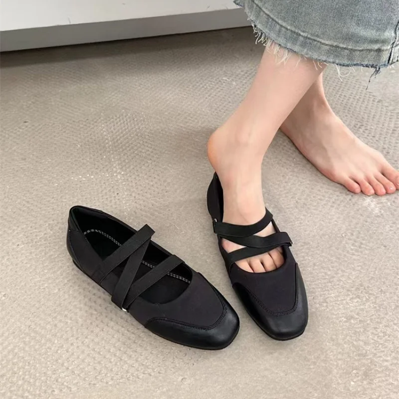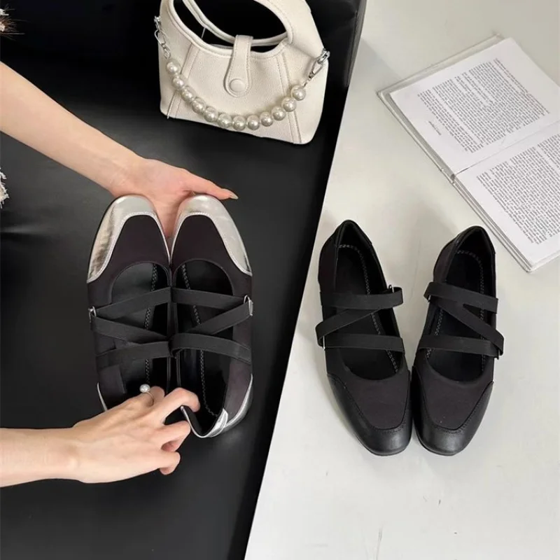 Nouvelles chaussures plates Mary Jane printemps/automne 2025, chaussures à enfiler à bout rond inspirées du ballet avec sangle élastique, escarpins de travail vintage pour femmes