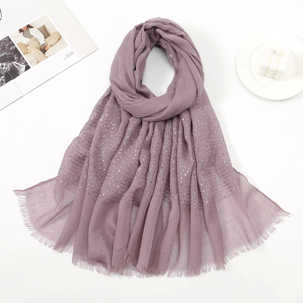 Paillettes coton Viscose musulman Hijab foulards femmes longs châles solide Foulard bandeau islamique Turban bandeau Foulard Bandana |
