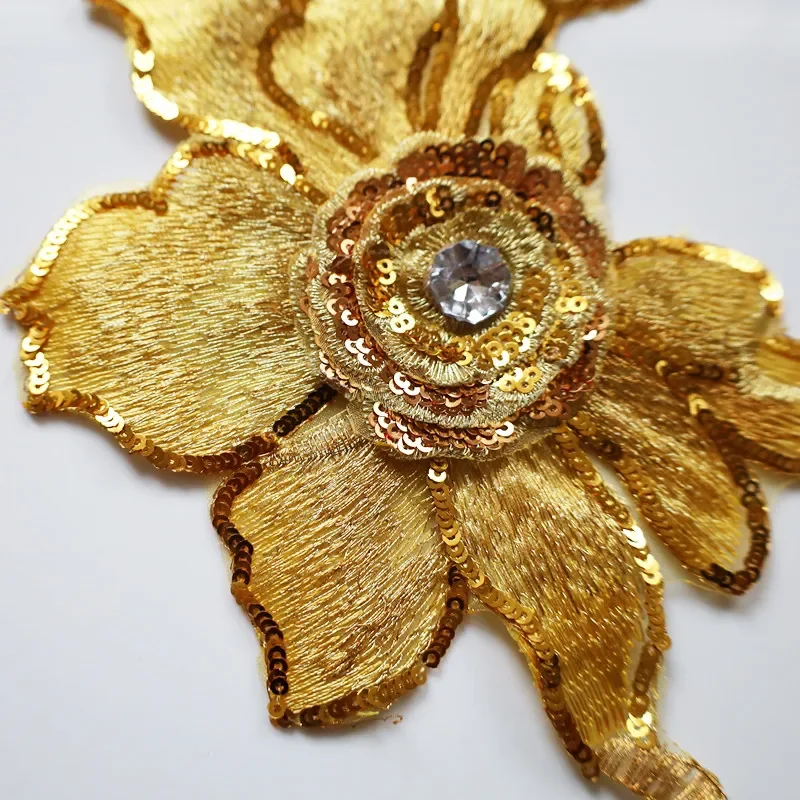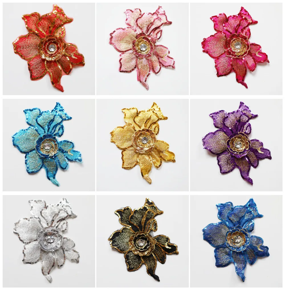 Paillettes strass fleur Patch couture broderie tissu Floral dentelle garniture maille Applique pour robe de mariée robe vêtements décor bricolage |