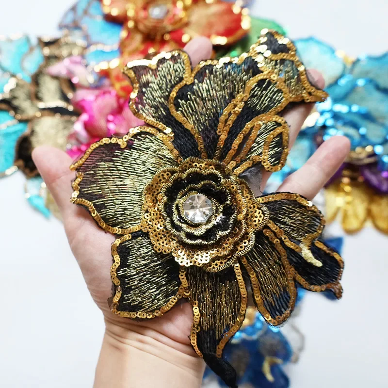 Paillettes strass fleur Patch couture broderie tissu Floral dentelle garniture maille Applique pour robe de mariée robe vêtements décor bricolage