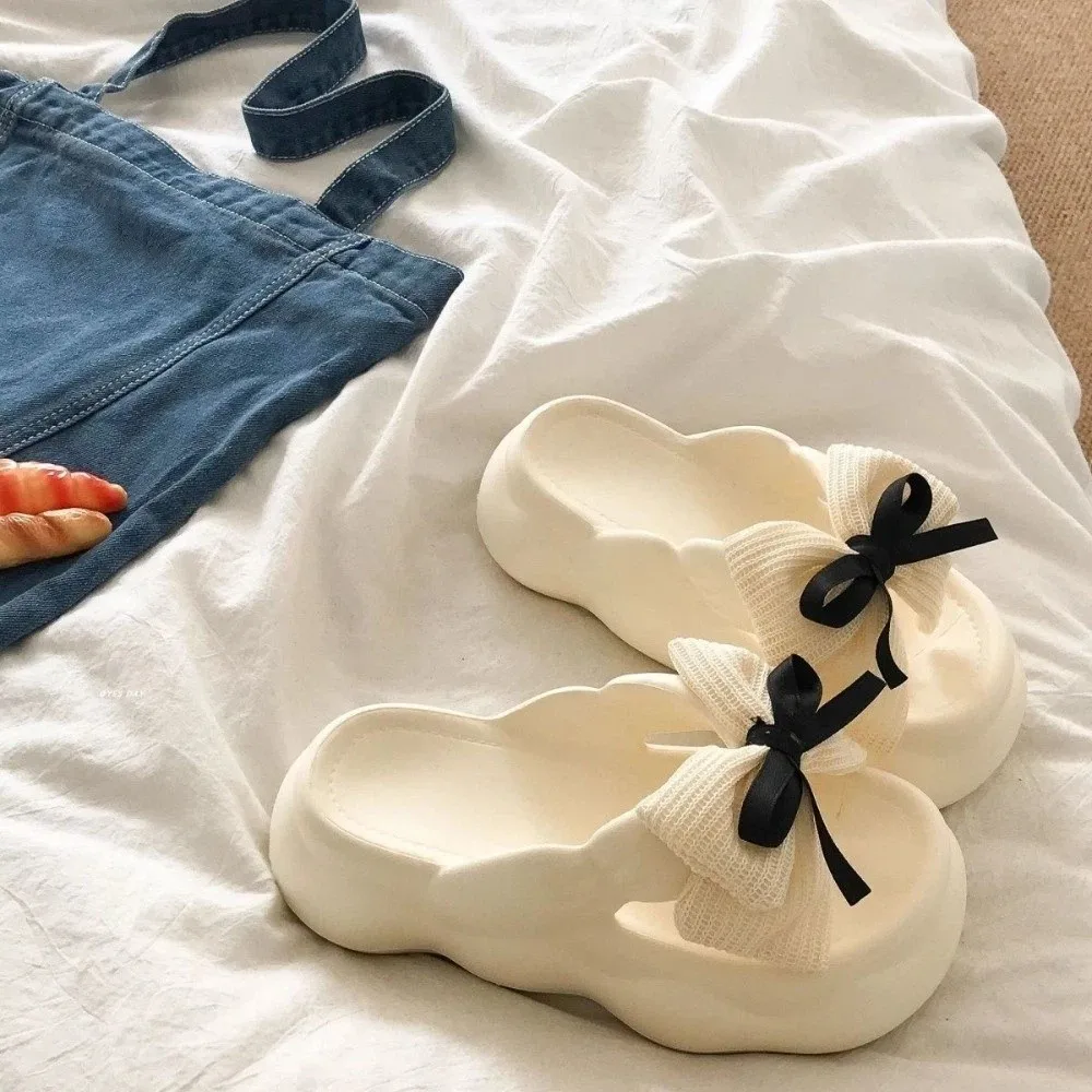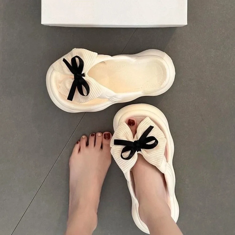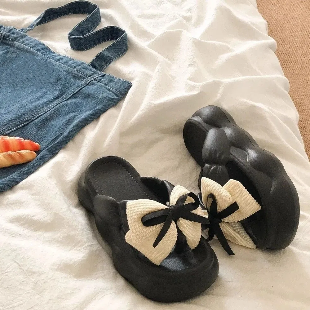 Pantoufles antidérapantes à nœud papillon, noir et blanc, sandales à nœud augmentant la hauteur, semelles épaisses, pantoufles décontractées à fond épais pour dames |