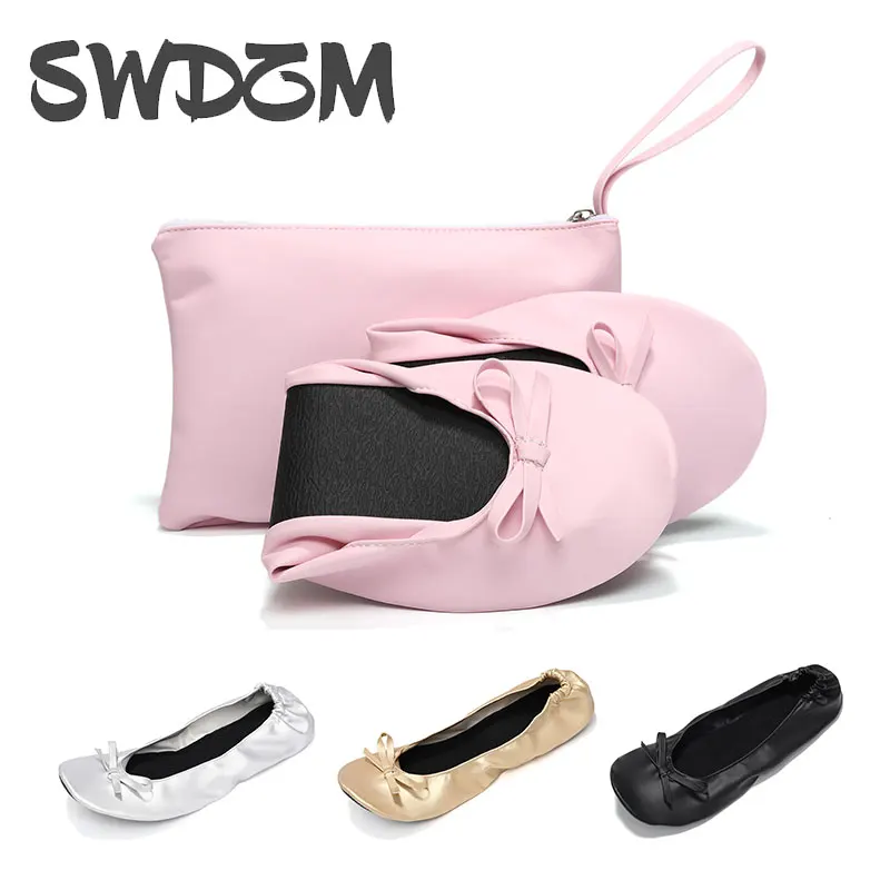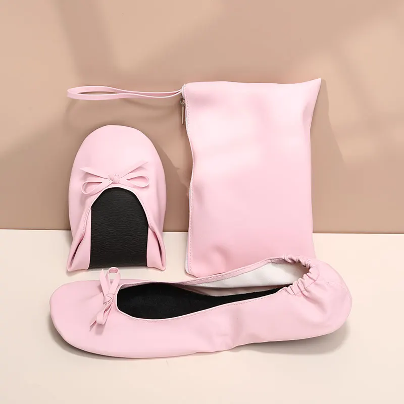 Pantoufles de Ballet de voyage portables pliables pour femmes, chaussures de bureau à fond plat, chaussures de Ballet pliables Flash pour filles