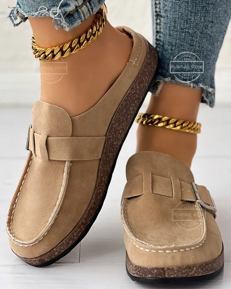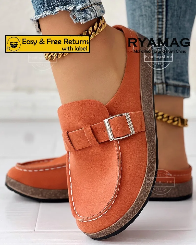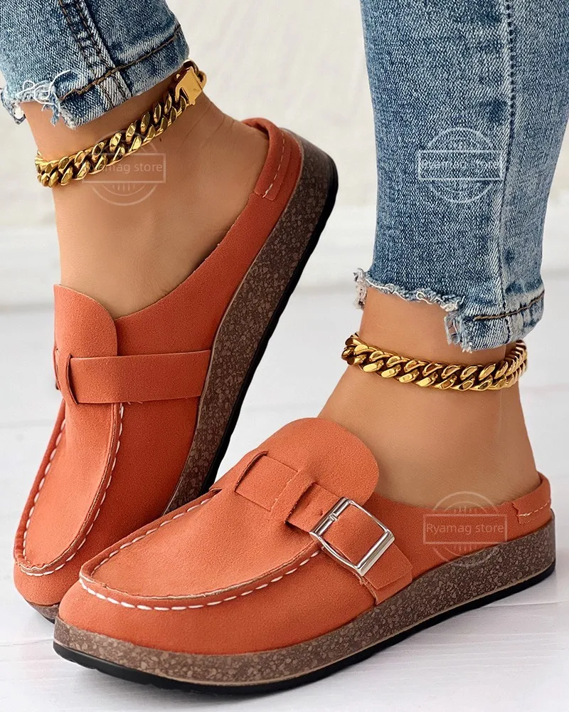 Pantoufles femmes bout rond boucle rétro chaussures sans lacet Mules dames confort appartements femme décontracté été sabots plats Zapatos Mujer |