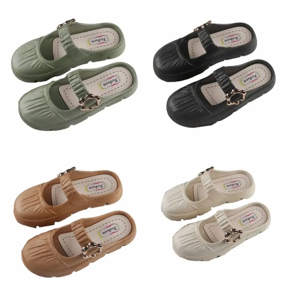 Pantoufles plates antidérapantes pour femmes, sandales à bout rond, chaussures à semelles souples, pantoufles d’été en cuir PU