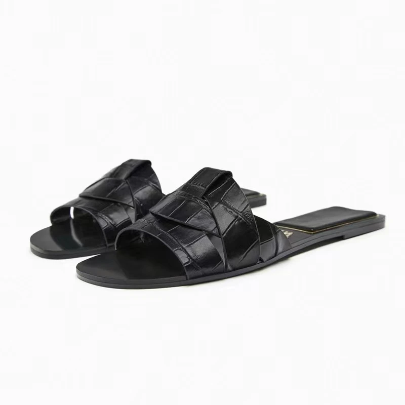 Pantoufles plates chaussures décontractées femme 2025 tendance luxe été robes élégantes sandales plage concepteur maison bout rond marque salle de bain |