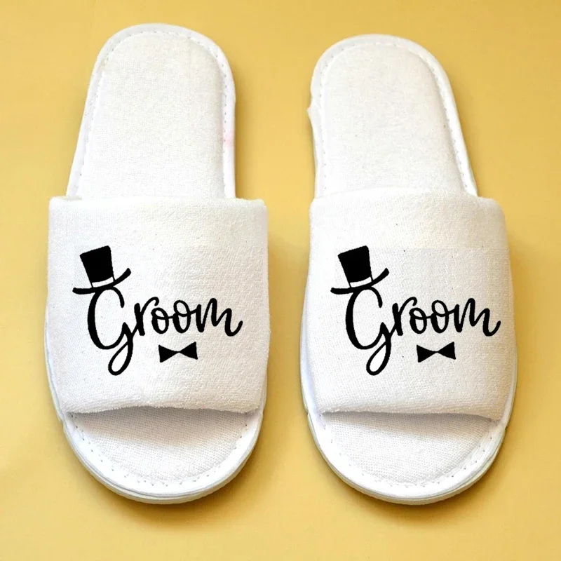 Pantoufles pour marié, cadeau de demoiselle d’honneur, fiançailles, mariage, enterrement de vie de jeune fille, douche nuptiale, décoration de voyage pour lune de miel