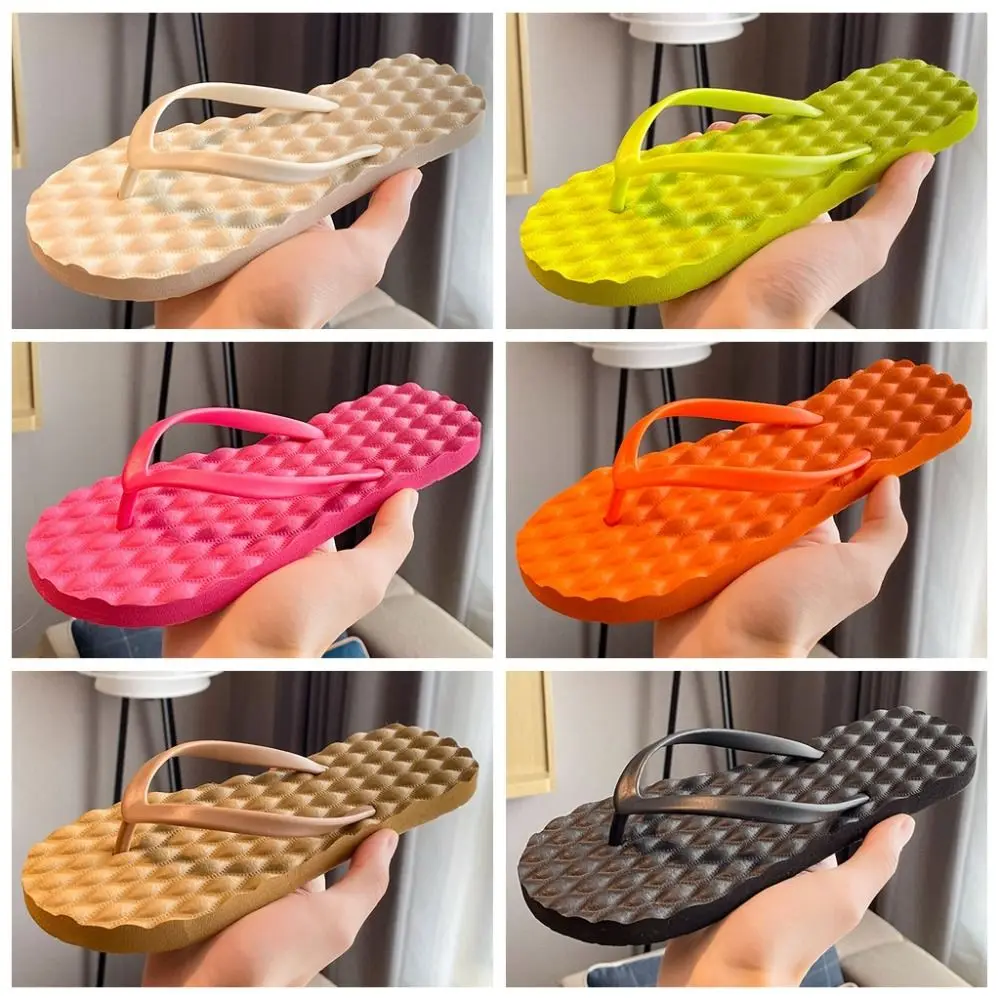 Pantoufles simples à semelles plates de couleur unie, tongs à plateforme de Massage, vêtements de plage EVA, sandales de plage pour la maison |