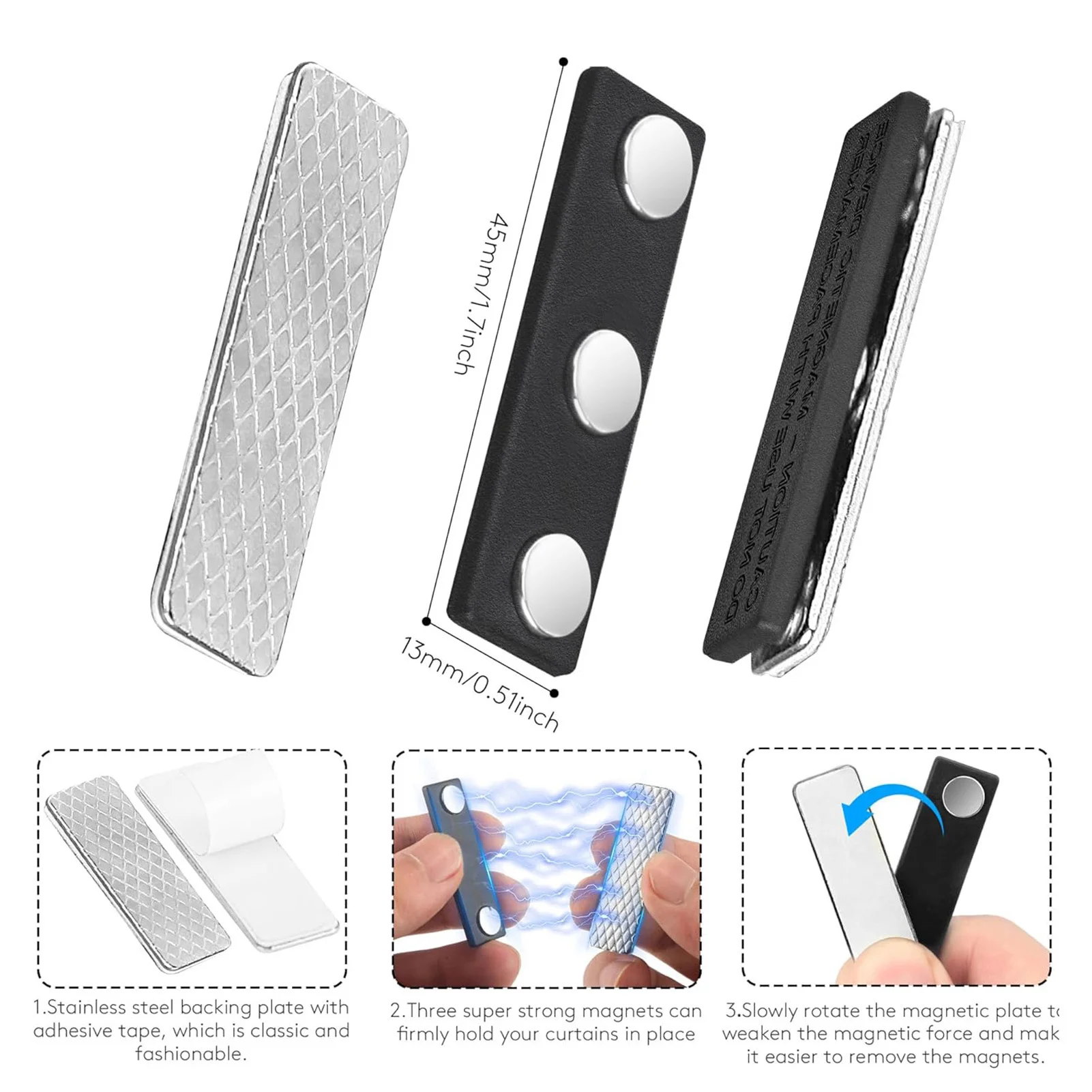 Paquet de 10 Clips de rideaux magnétiques pour rideaux horizontaux avec porte-cravates adhésifs à dos adhésif, porte-étiquette d’identification de nom de carte