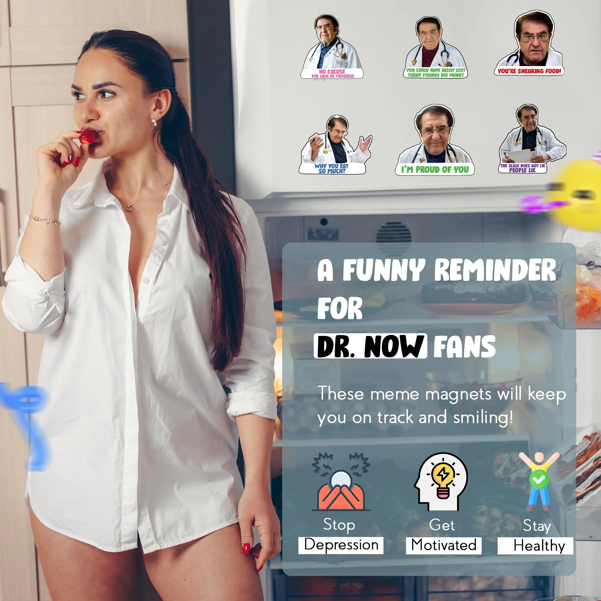 Paquet de 12 aimants Dr Now, aimant de réfrigérateur drôle Dr Nowzaradan, texte noir, aide à la régime de motivation-accessoires magnétiques amusants et mignons |