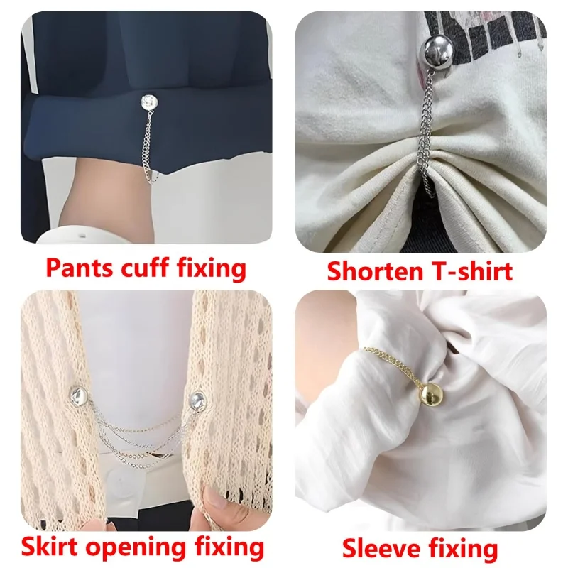 Paquet de 4/2 clips magnétiques pour vêtements – Solution instantanée pour la couture des vêtements | Ajusteur sécurisé de l'ourlet de chemise, support pour hanab et écharpe avec chaîne |