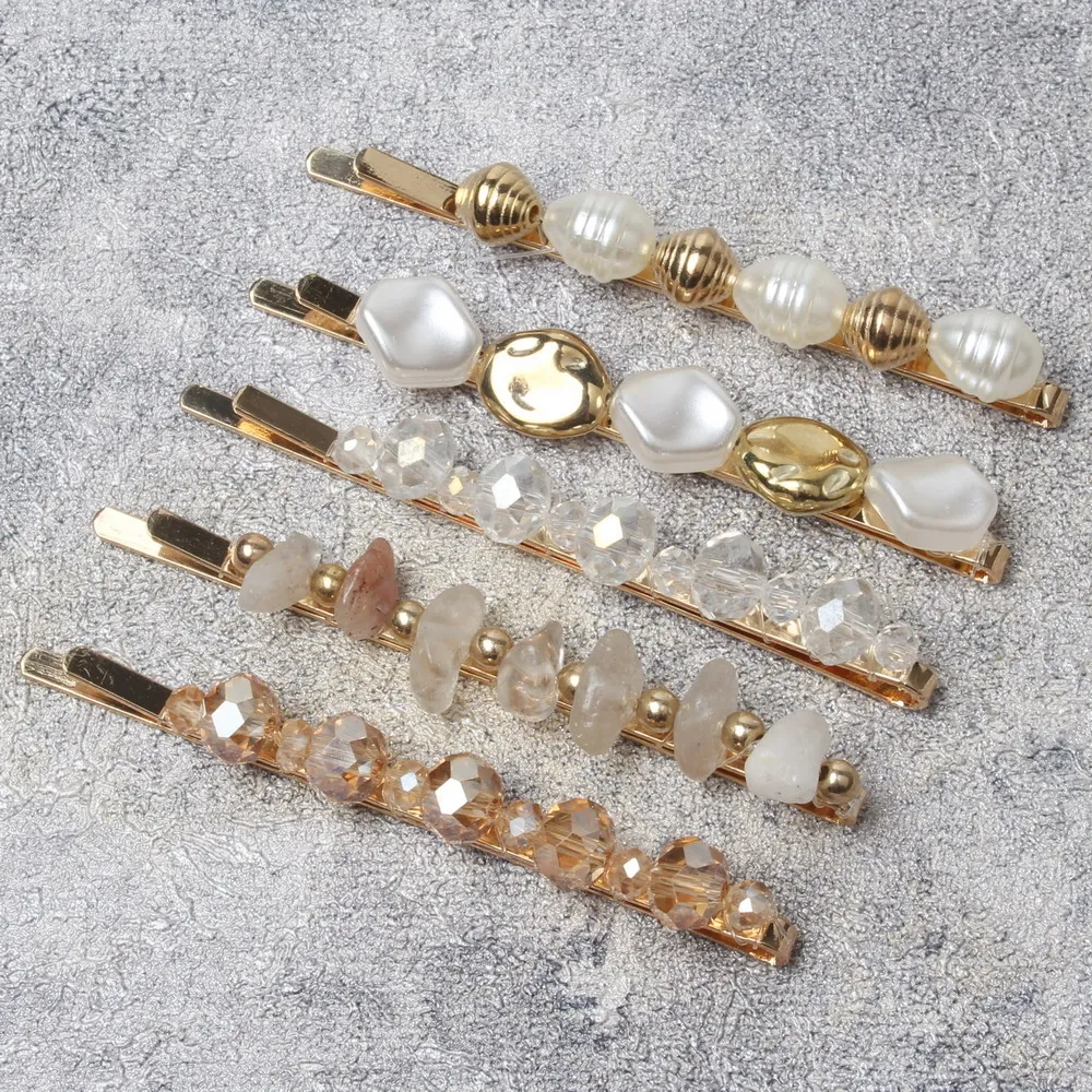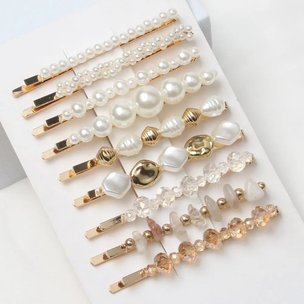 Paquet de 9 pinces à cheveux en perles pour femmes et filles, jolies diapositives de cheveux en perles scintillantes, épingles à cheveux en perles, Barrettes en or faites à la main |