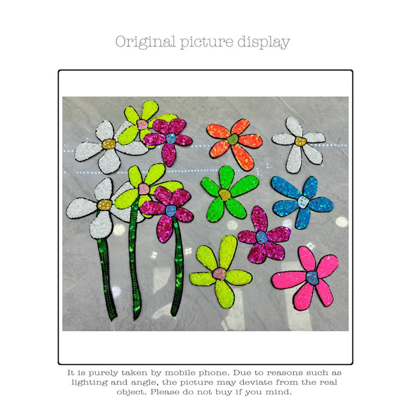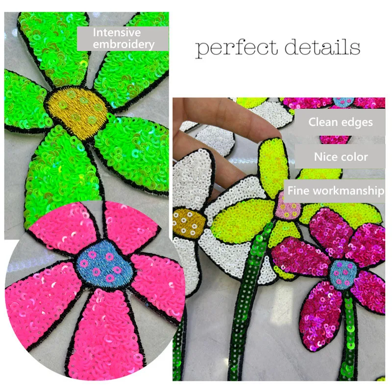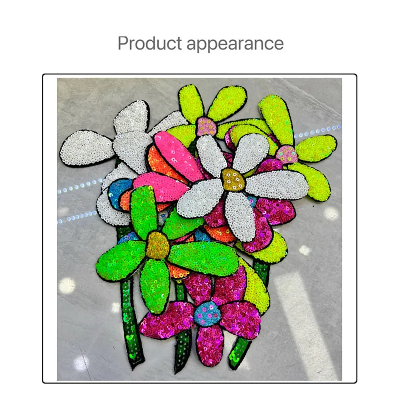 Patch brodé de paillettes de fleurs colorées une pièce, patchs à repasser à la mode pour sacs à vêtements, accessoires de vêtement DIY |