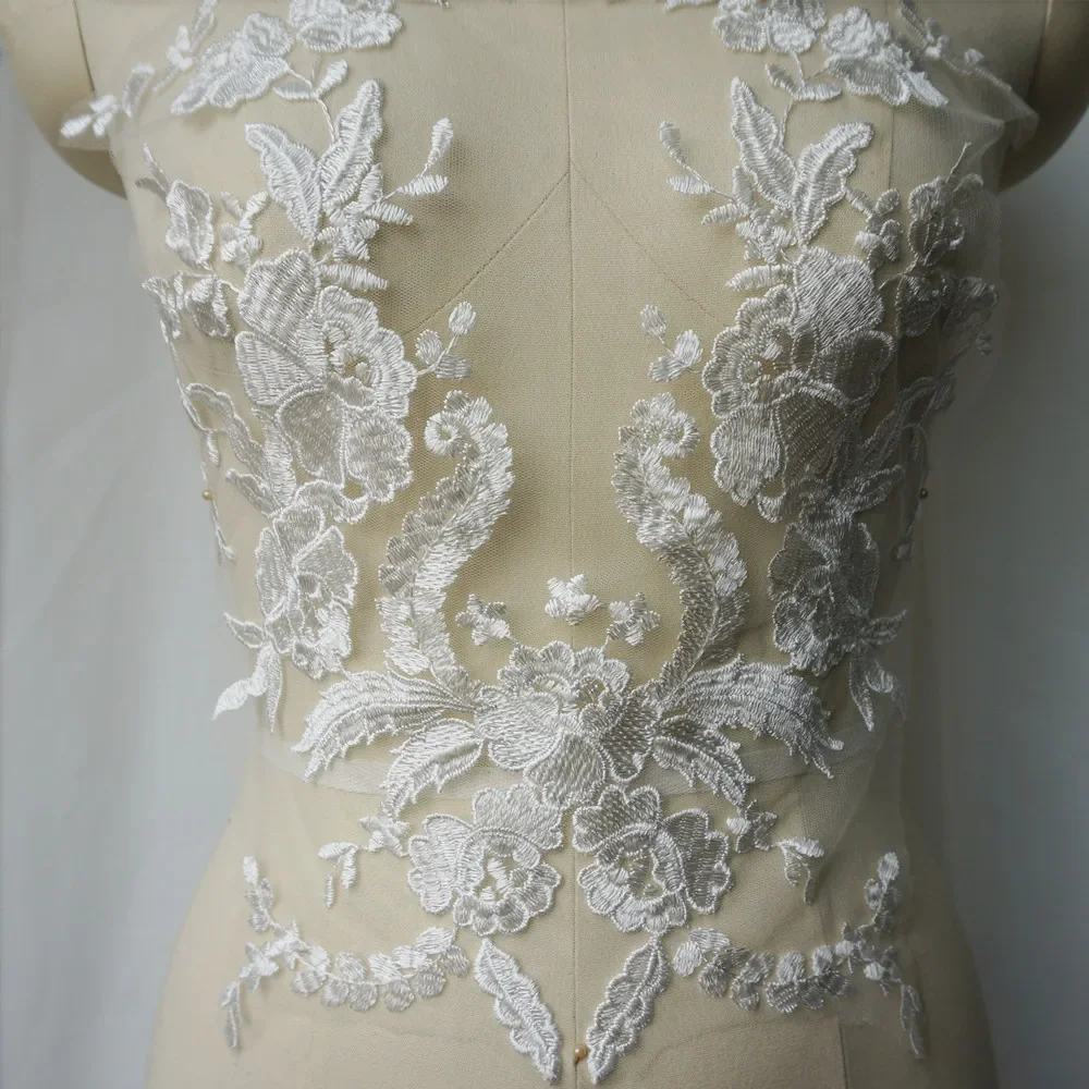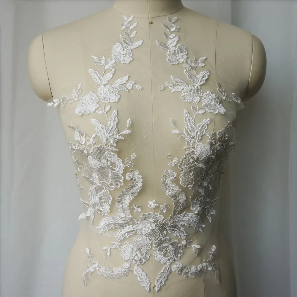 Patch de col en tissu brodé en dentelle, couture de fleurs, pour robe de soirée de mariage, vêtements de mariée, artisanat de bricolage |