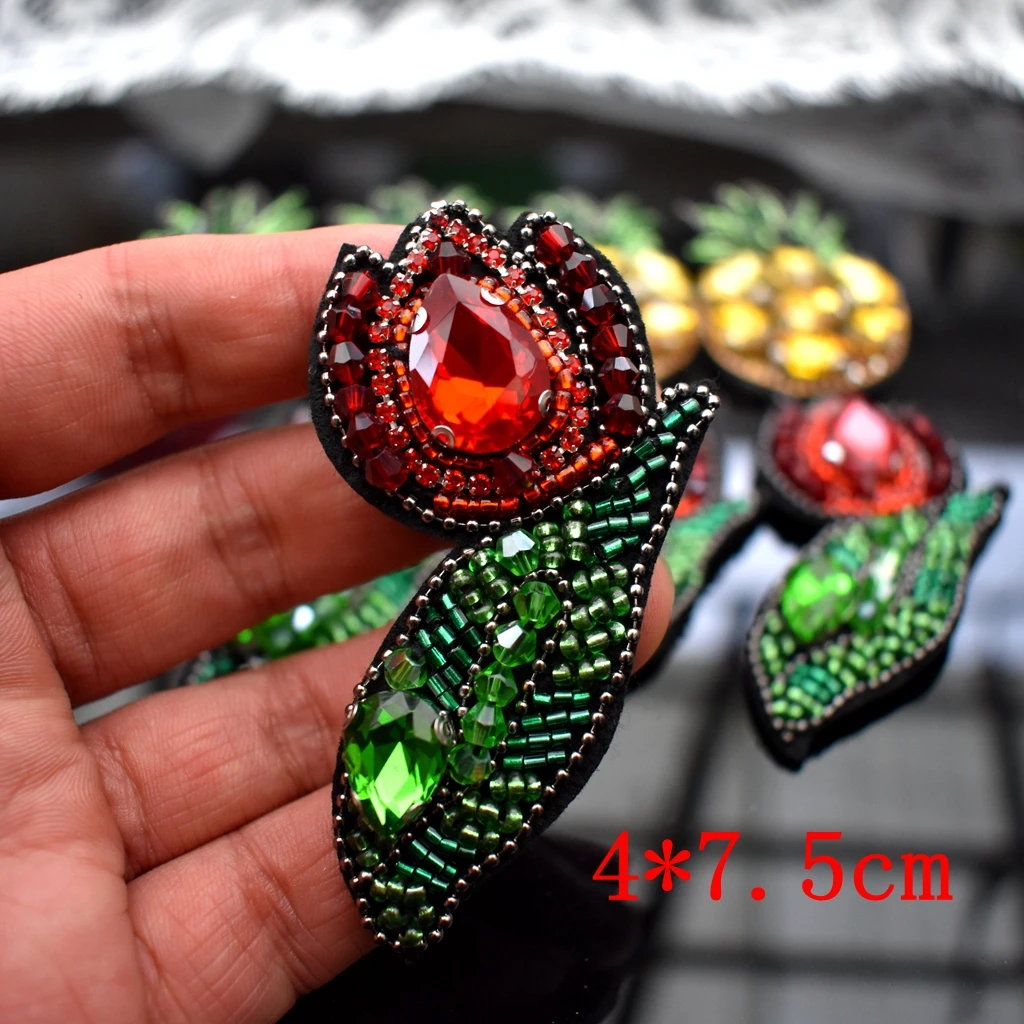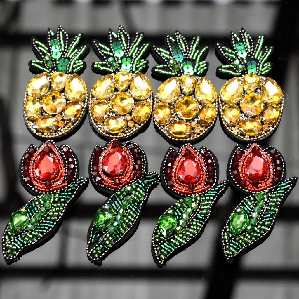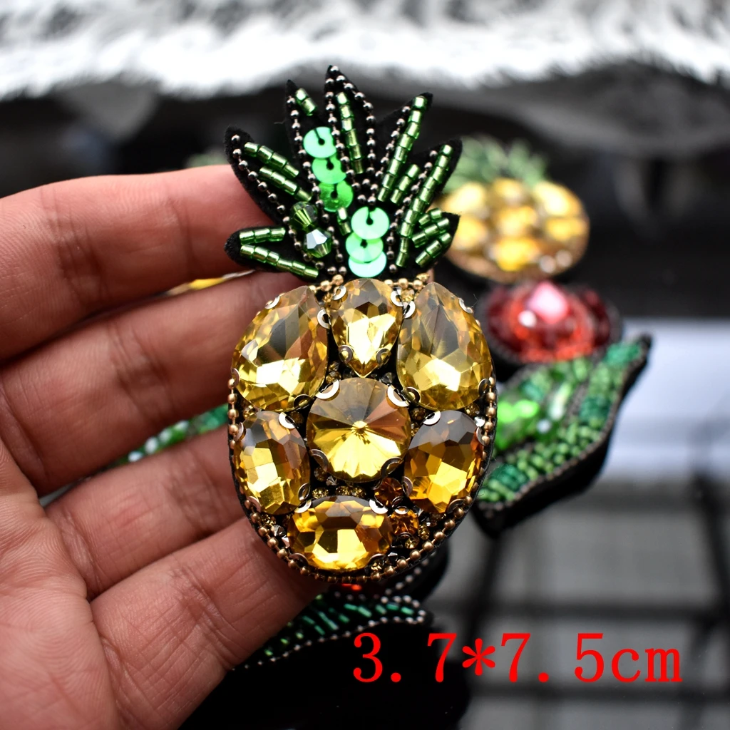 Patchs brodés en strass, ananas, fruits, travaux manuels, perles pour vêtements, couture sur vêtements, badges appliqués |