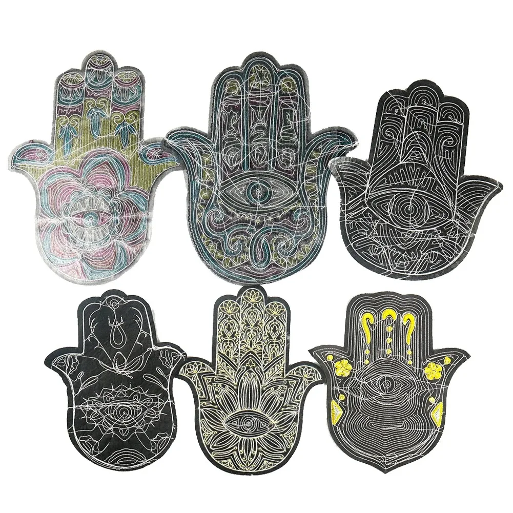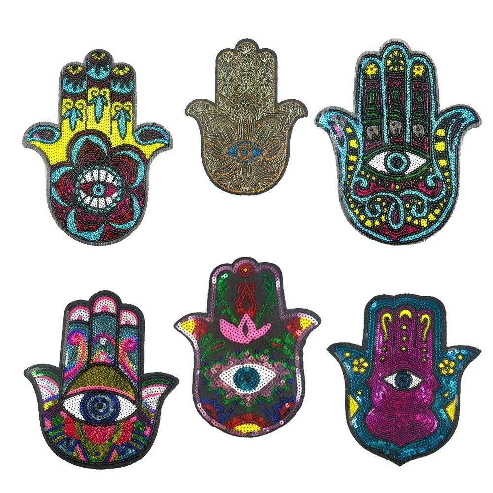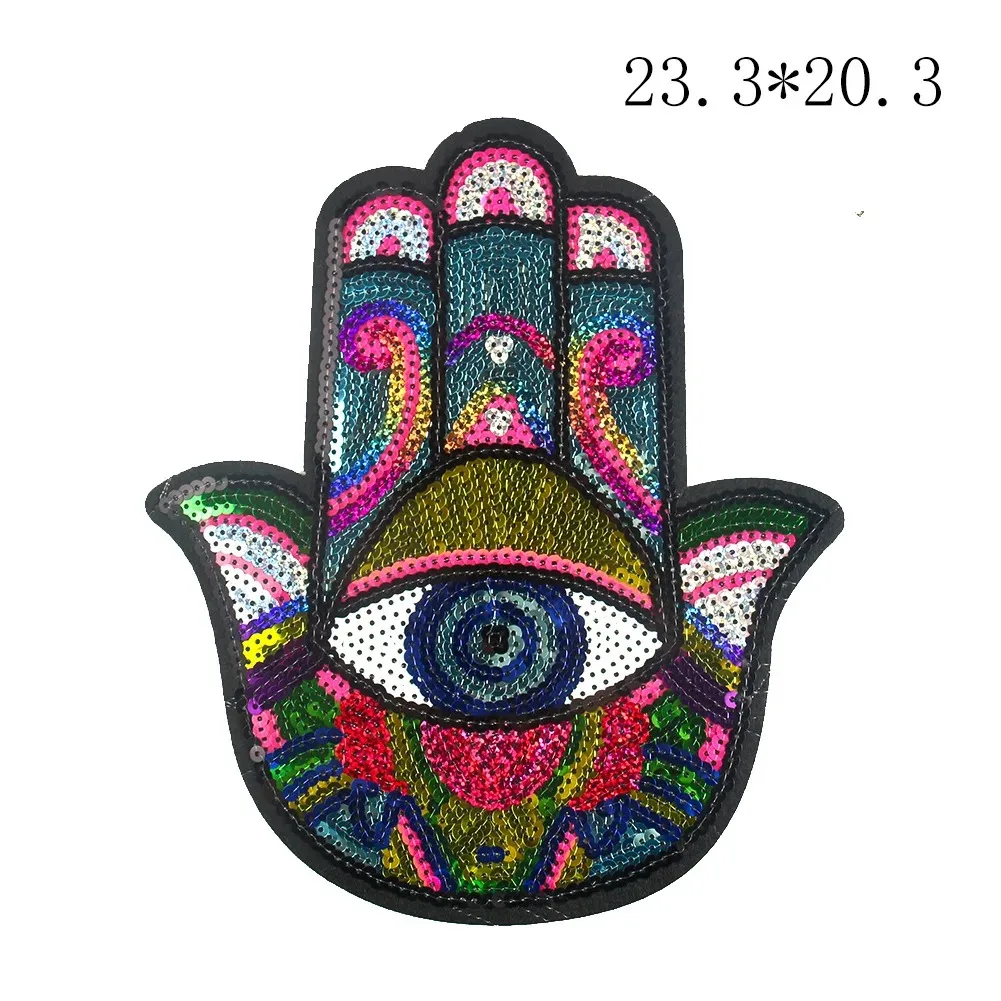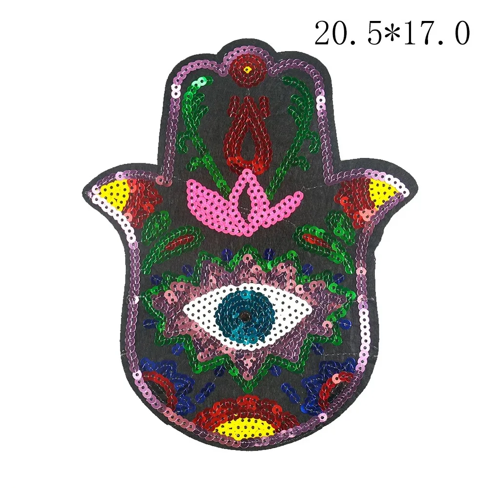 Patchs de broderie main de Fatima à paillettes, grande taille, mauvais œil, applique à coudre, accessoires vestisens, fournitures de couture, badge de sac |