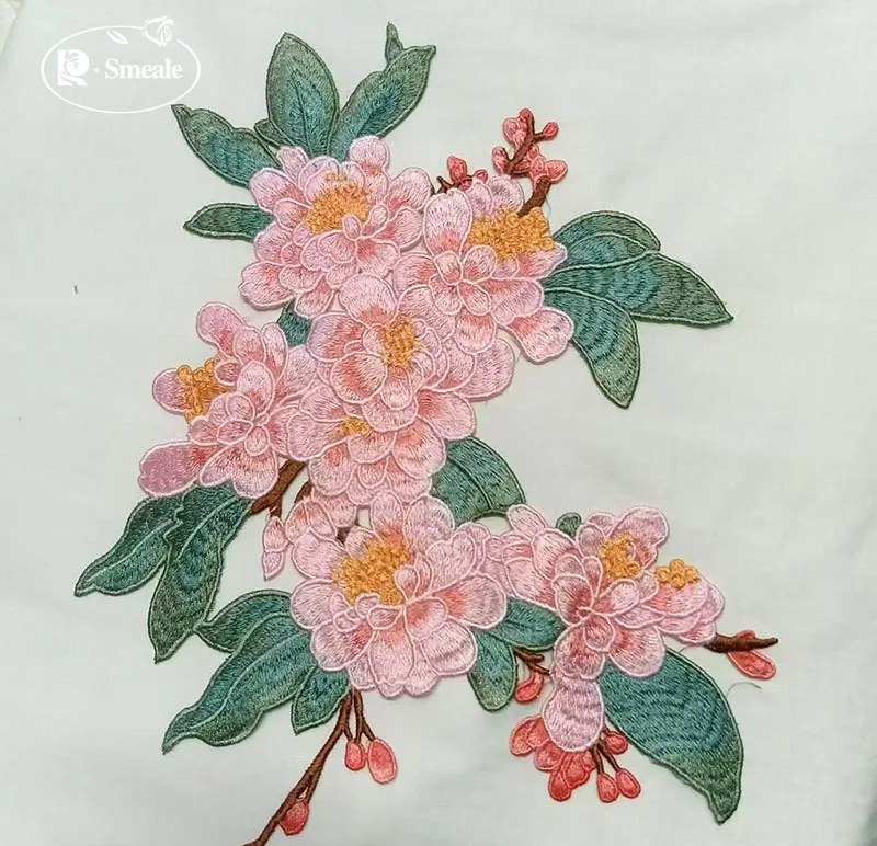 Patchs de fleurs de pêcher en tissu brodé, décoration de robe. Accessoires de couture DIY Applique en dentelle RS2506172 |