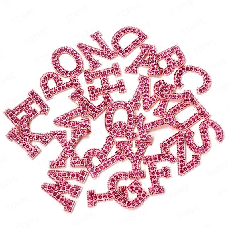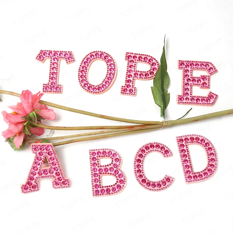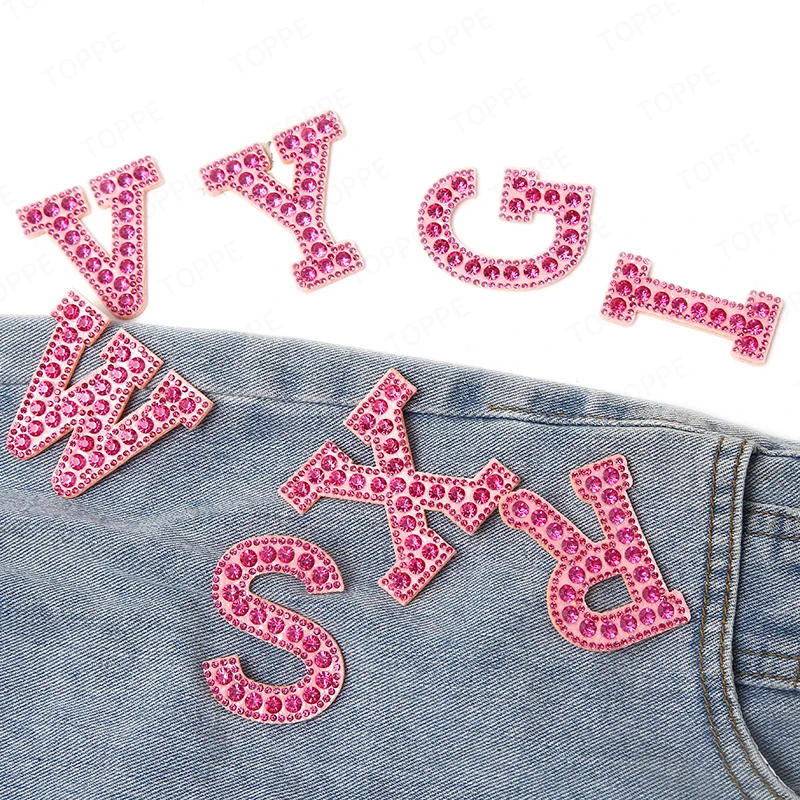Patchs de lettres anglaises en strass et perles roses, autocollants à repasser, appliqués 3D, perles faites à la main, mignons, DIY bricolage, nouveauté |