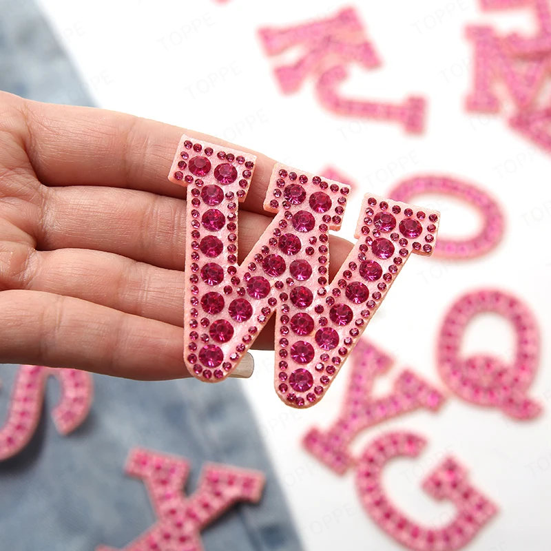 Patchs de lettres anglaises en strass et perles roses, autocollants à repasser, appliqués 3D, perles faites à la main, mignons, DIY bricolage, nouveauté