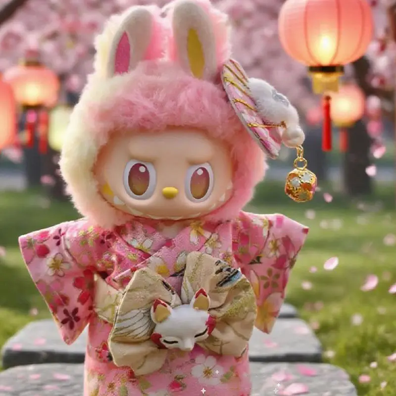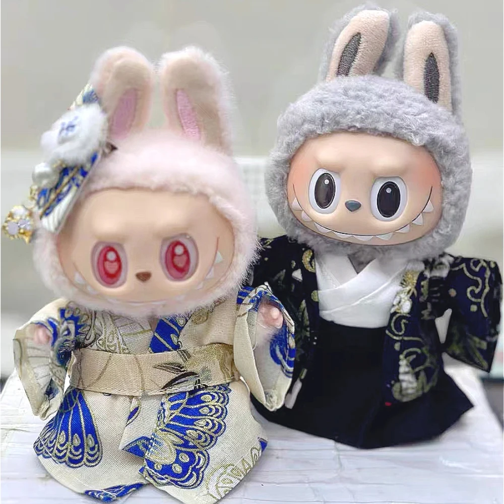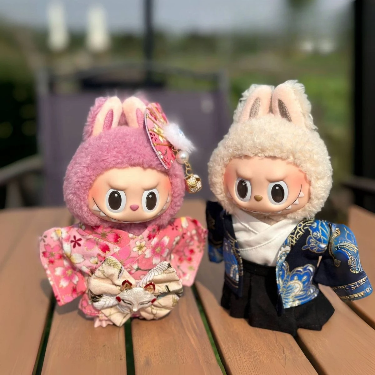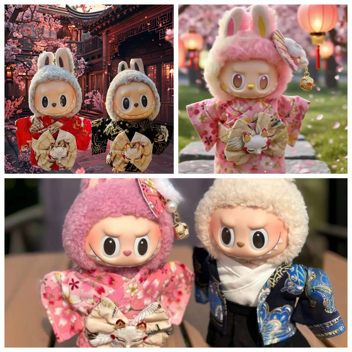 Peignoir Kimono japonais Labubu 17cm 3.0, ensemble de vêtements avec fleur, accessoires pour vêtements de Style japonais |