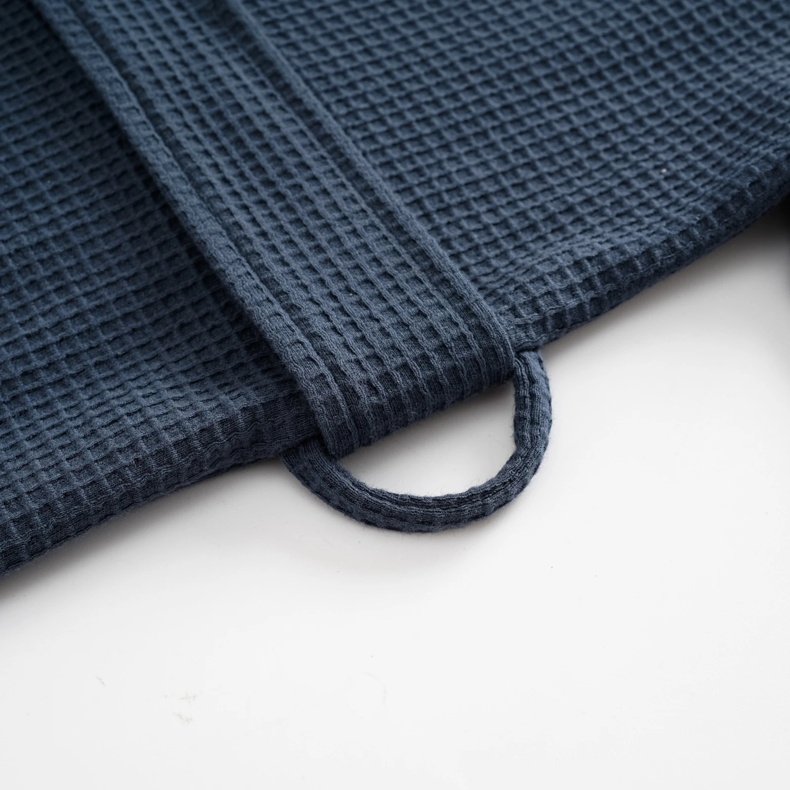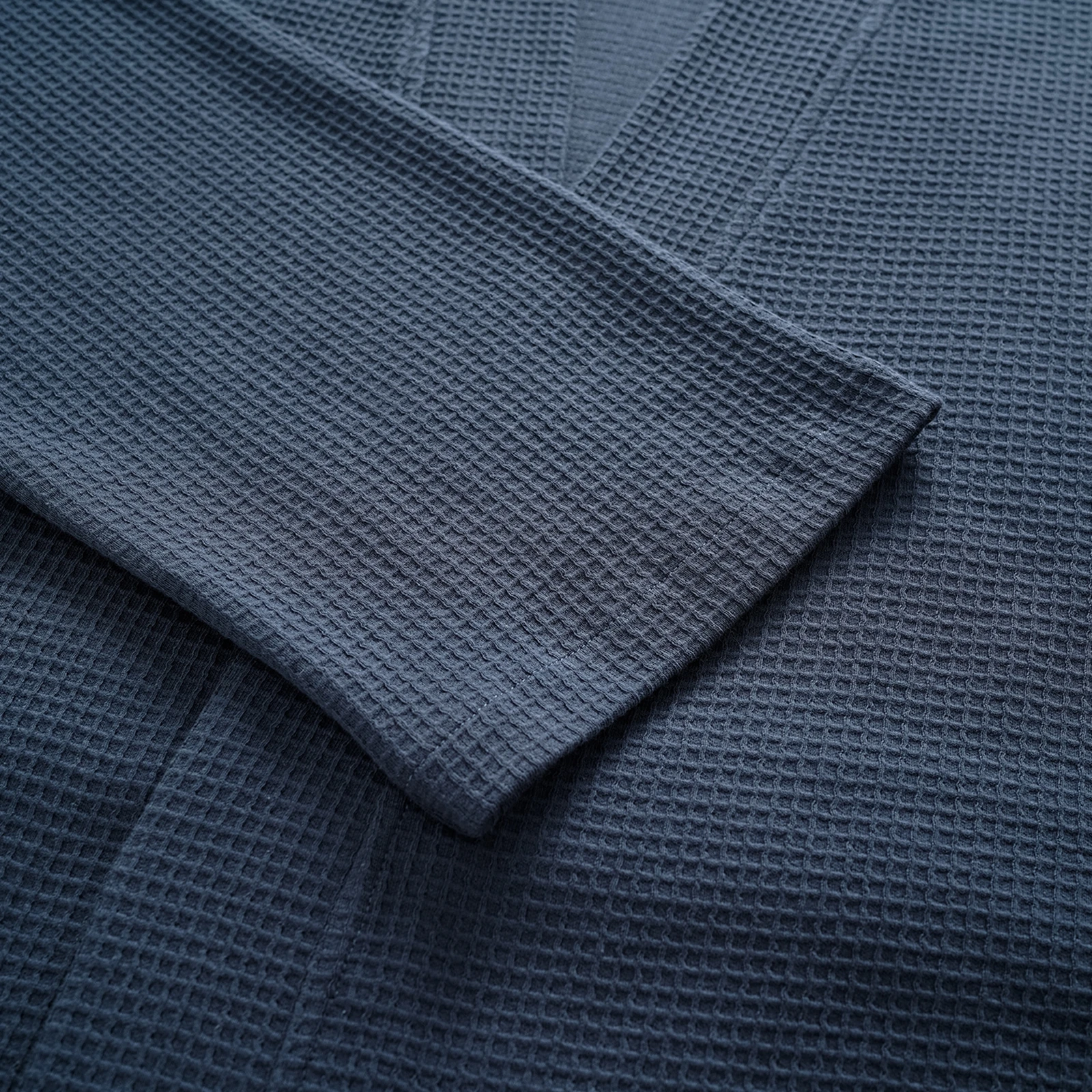 Peignoir pour hommes Premium – Tissage gaufré 100 % coton en bleu saphir avec col en V et ceinture à nouer Robe kimono gaufrée de luxe – Respirant