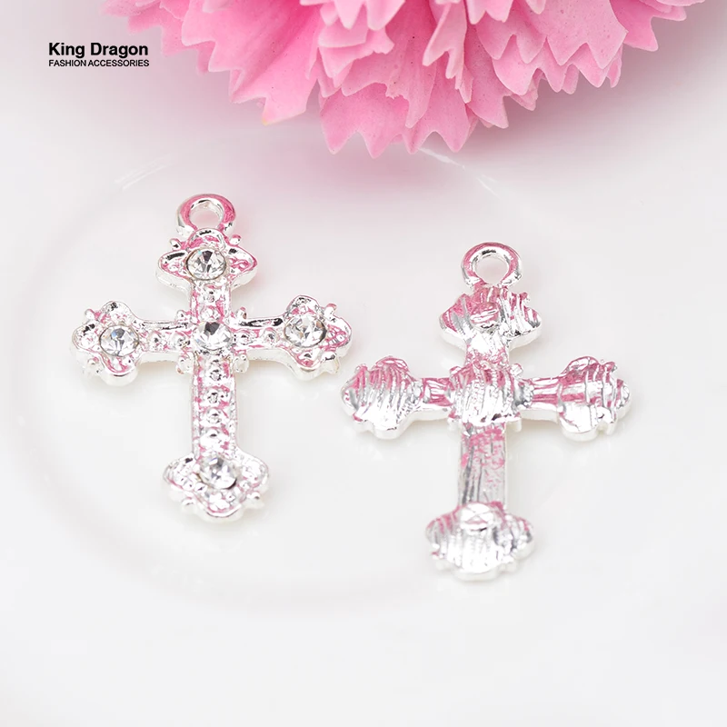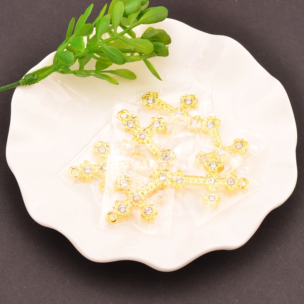 Pendentif croix en strass, embellissement utilisé pour la décoration artisanale, 32MM x 22MM, 10 pièces/lot, couleur or ou argent KD437 |