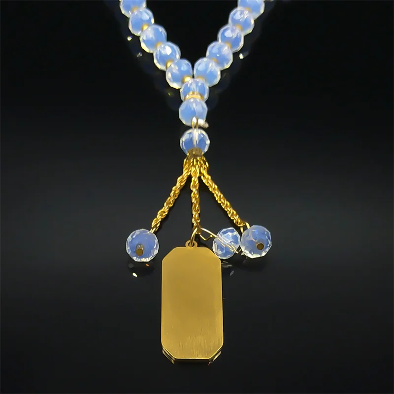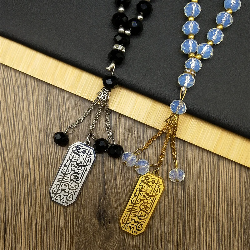 Pendentif de voiture islamique Coran Ayatul Kursi Sutra pour femmes et hommes, en acier inoxydable, 33 perles de prière musulmanes, chaîne en verre bleu du Ramadan, bijoux |