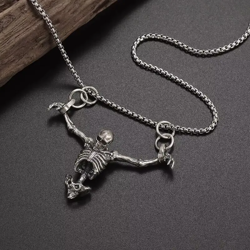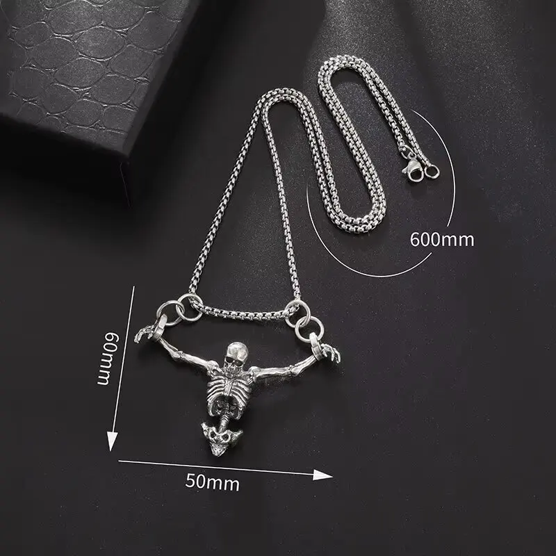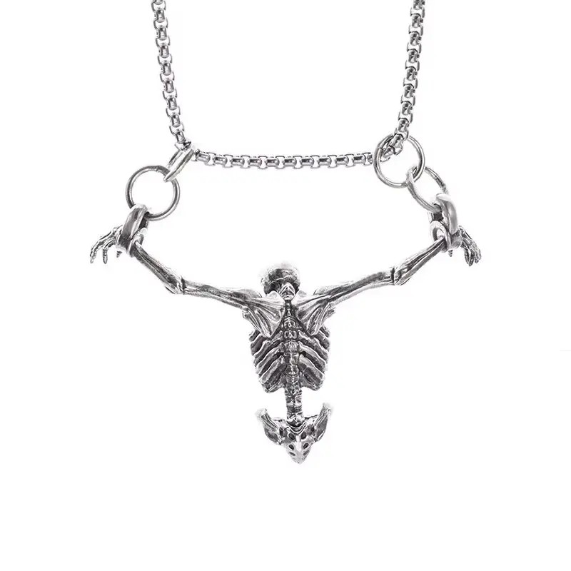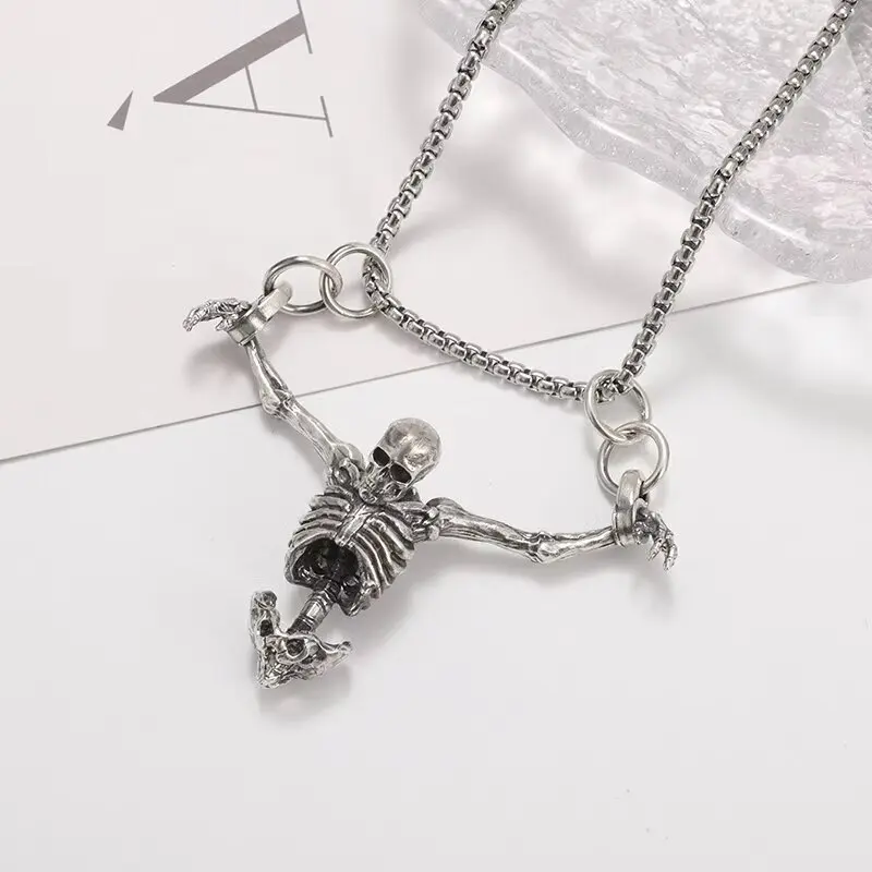 Pendentif tête de mort pour le haut du corps, couleur argent, collier de motard Punk pour hommes, gothique, Alternative, bijoux décontractés