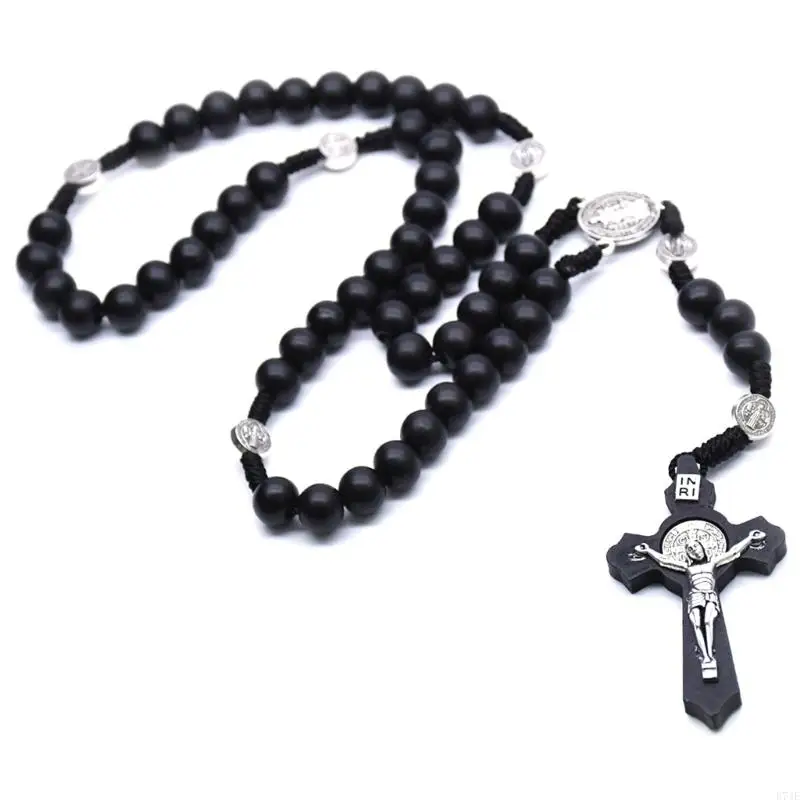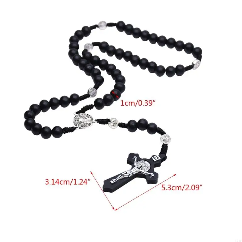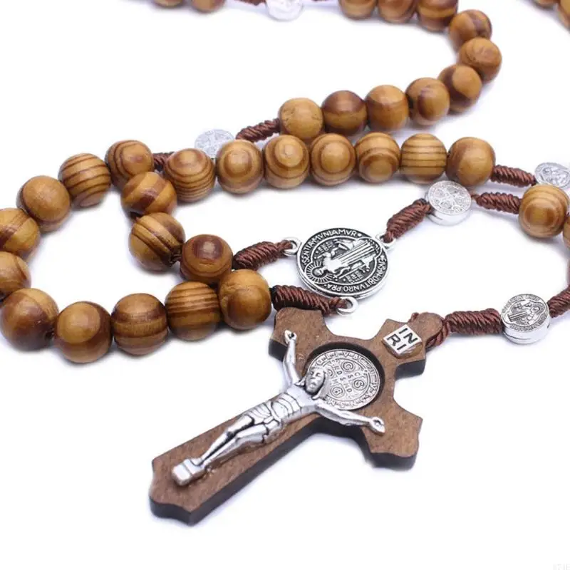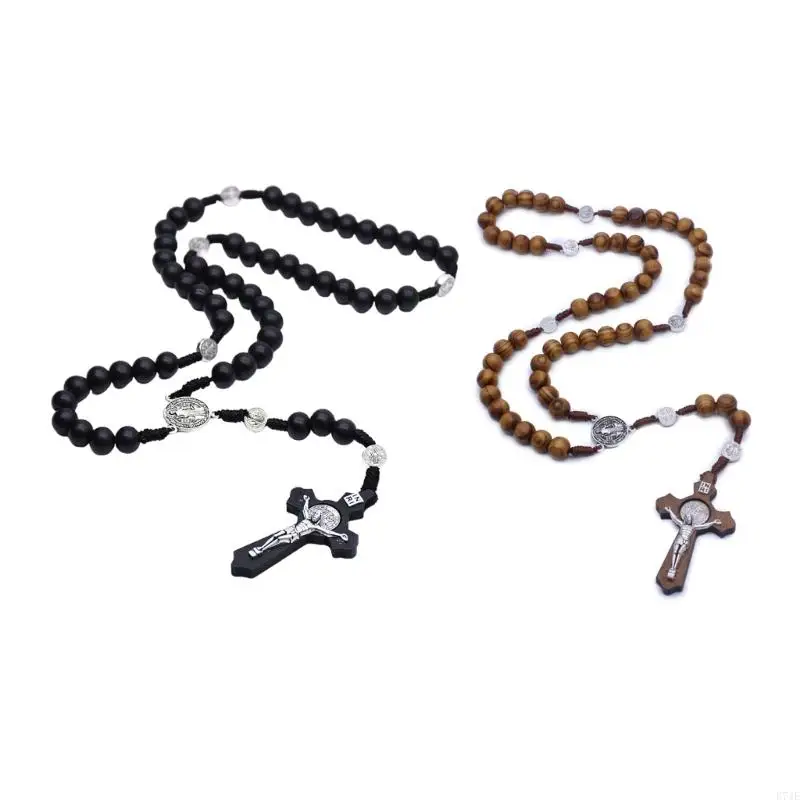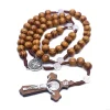 Perles de bois croix chapelet colliers croix catholique pendentif prière chrétienne bijoux religieux cadeau pour hommes femmes colliers |