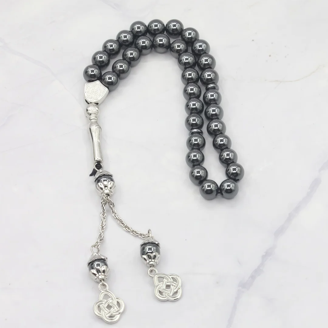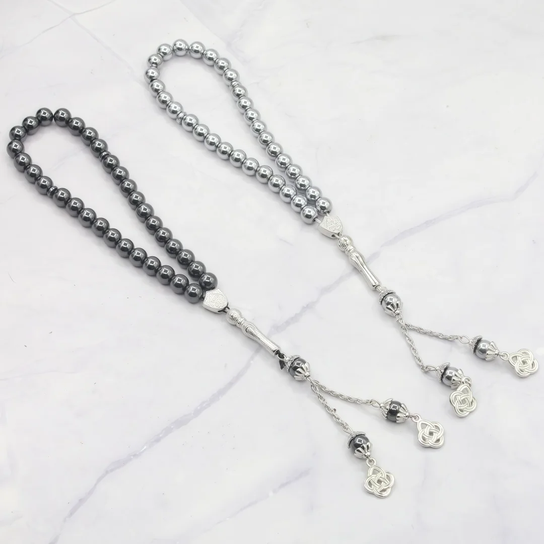 Perles de prière en pierre biliaire noire musulmane, 8mm, 33 perles, perles d'éloges islamiques, ficelle arabe, accessoires de Festival pour hommes et femmes |