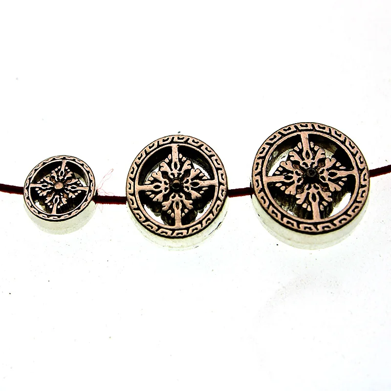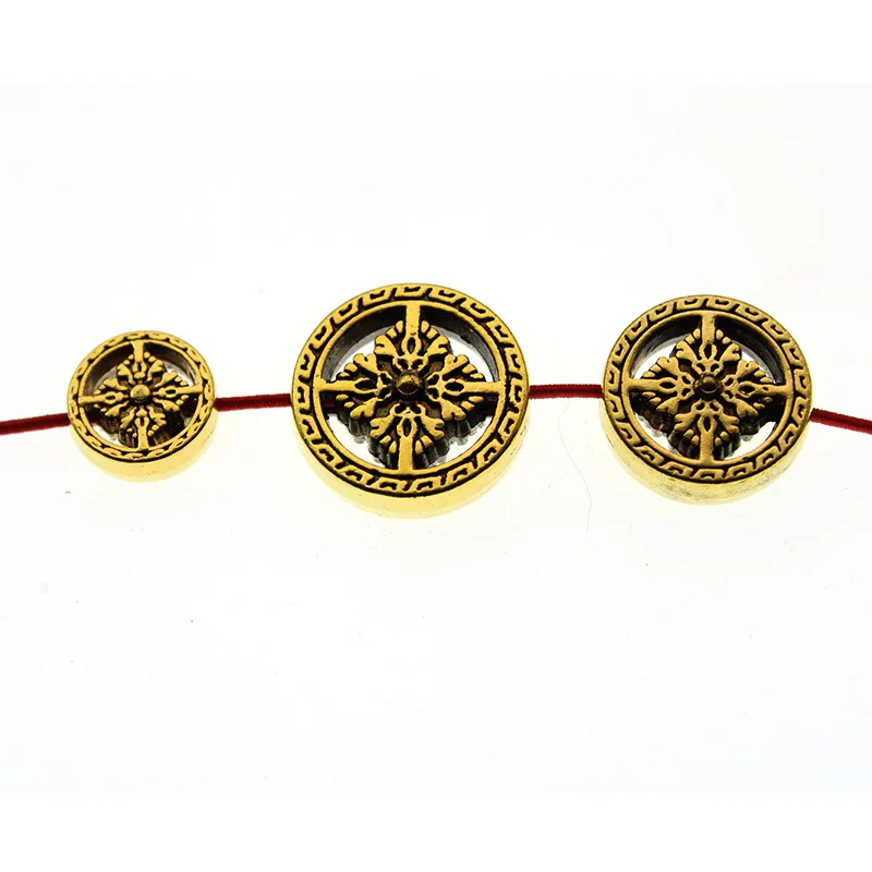 Perles de prière rondes faites à la main du bouddhisme, perles d'espacement antiques, argent et or, document At, résultats de bijoux à bricoler soi-même, 10 pièces par lot |