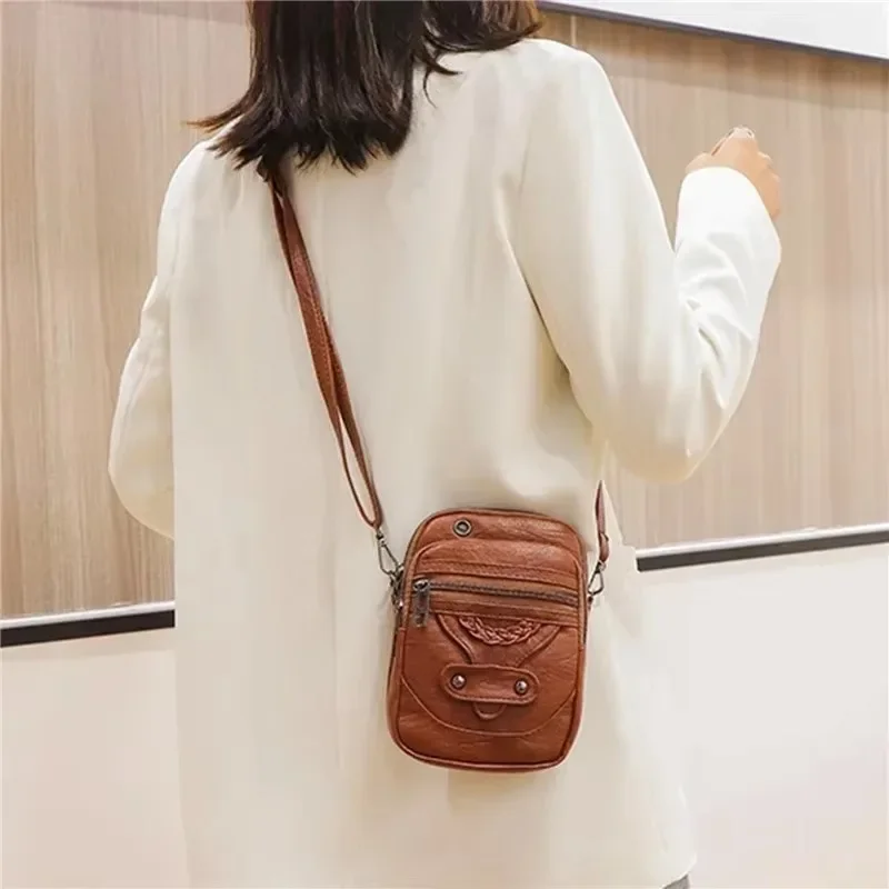 Petit sac rétro en cuir souple pour femmes, sacoche à bandoulière en PU, sac à main, portefeuille pour téléphone portable |