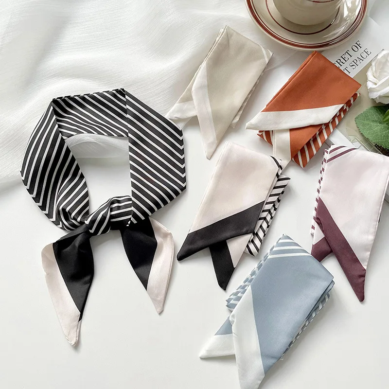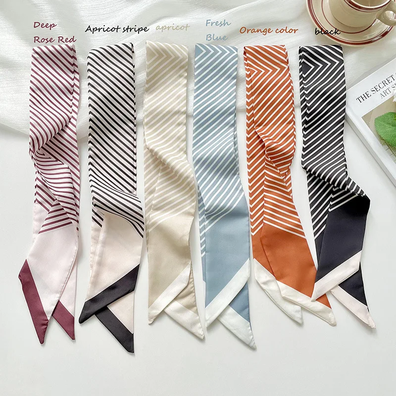 Petite écharpe fine et longue 80x6CM pour femmes, polyvalente, rayée noire, sac à cravate pour cheveux, décoration, cadeau de fête, nouvelle collection |