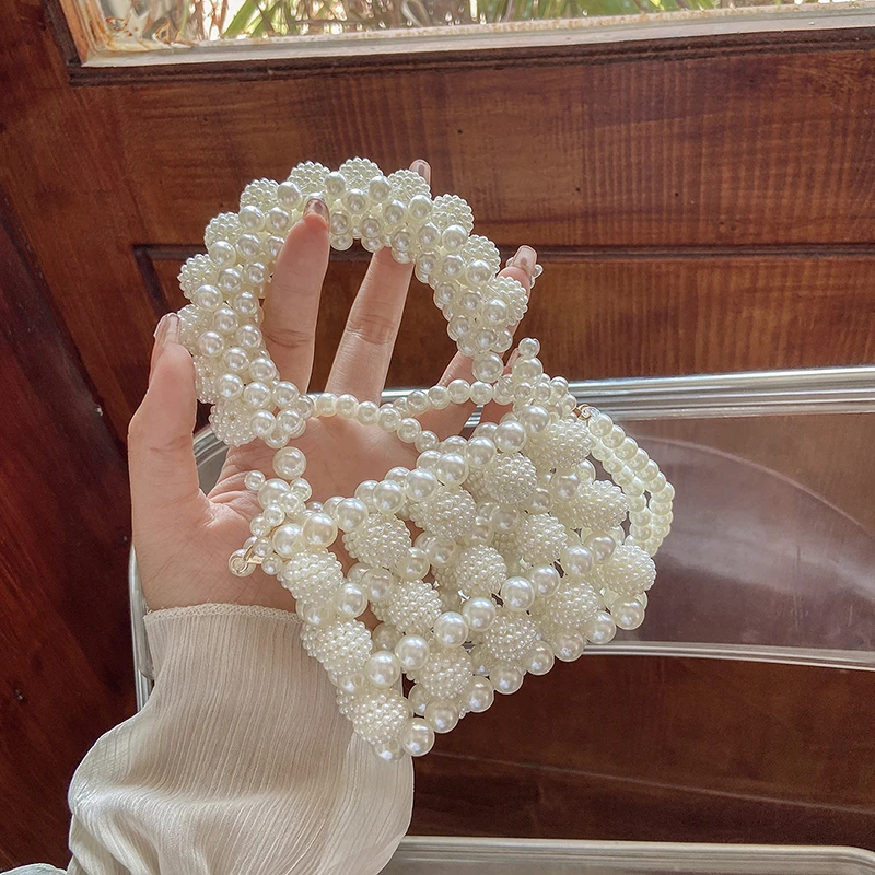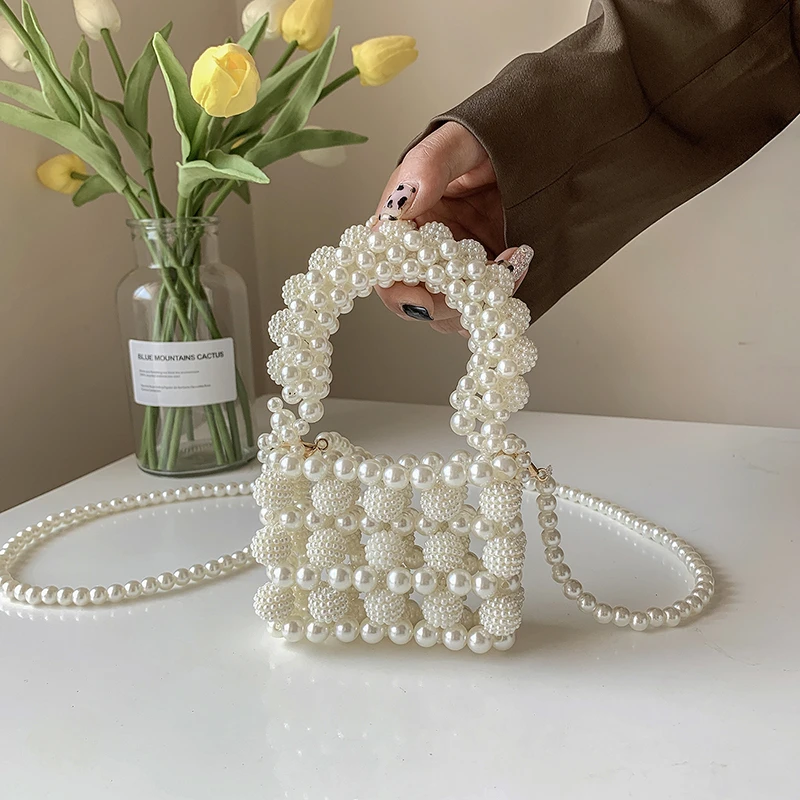 Petite pochette carrée creuse avec perle pour femme, sacs de soirée, pochette de mariée à boucle, sacs de soirée de luxe