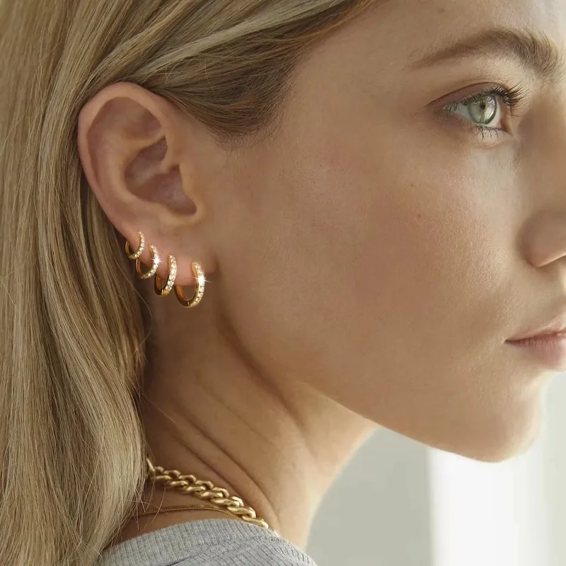 Petites boucles d’oreilles créoles en argent Sterling 925, Huggie en zircone plaqué or 14 carats, Piercing pour Cartilage, manchette d’oreille, petites boucles d’oreilles pour femmes et hommes