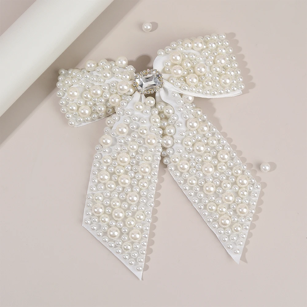 Pince à cheveux coréenne avec nœud en perles, ruban élégant, épingle à cheveux, strass doux, Barrette faite à la main pour femmes et filles, accessoires de coiffure pour enfants |