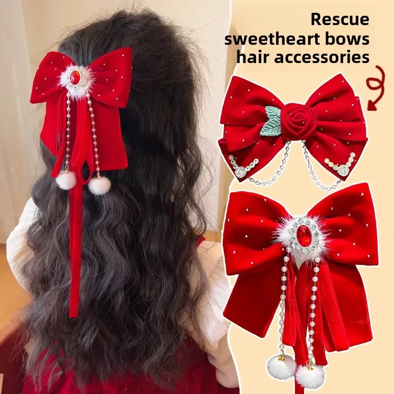 Pince à cheveux de Style chinois pour fille avec nœud, couronne rouge, pince supérieure, couvre-chef de Style Antique pour enfants, accessoire pour cheveuxPince à cheveux de Style chinois pour fille avec nœud, couronne rouge, pince supérieure, couvre-chef de Style Antique pour enfants, accessoire pour cheveux