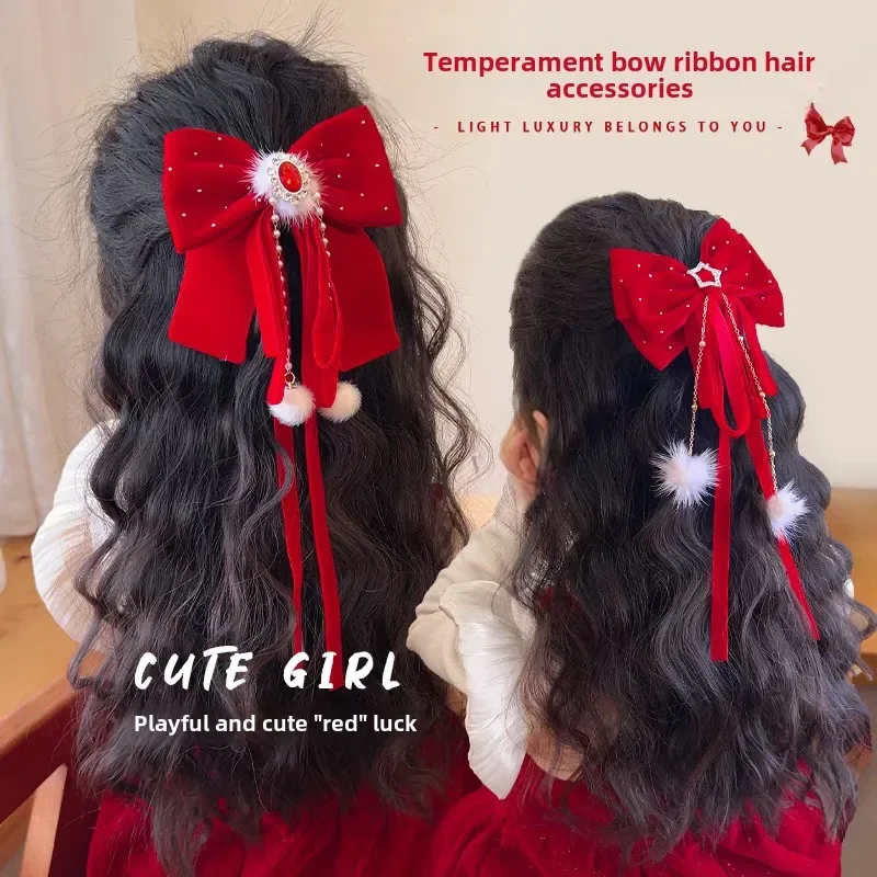 Pince à cheveux de Style chinois pour fille avec nœud, couronne rouge, pince supérieure, couvre-chef de Style Antique pour enfants, accessoire pour cheveux