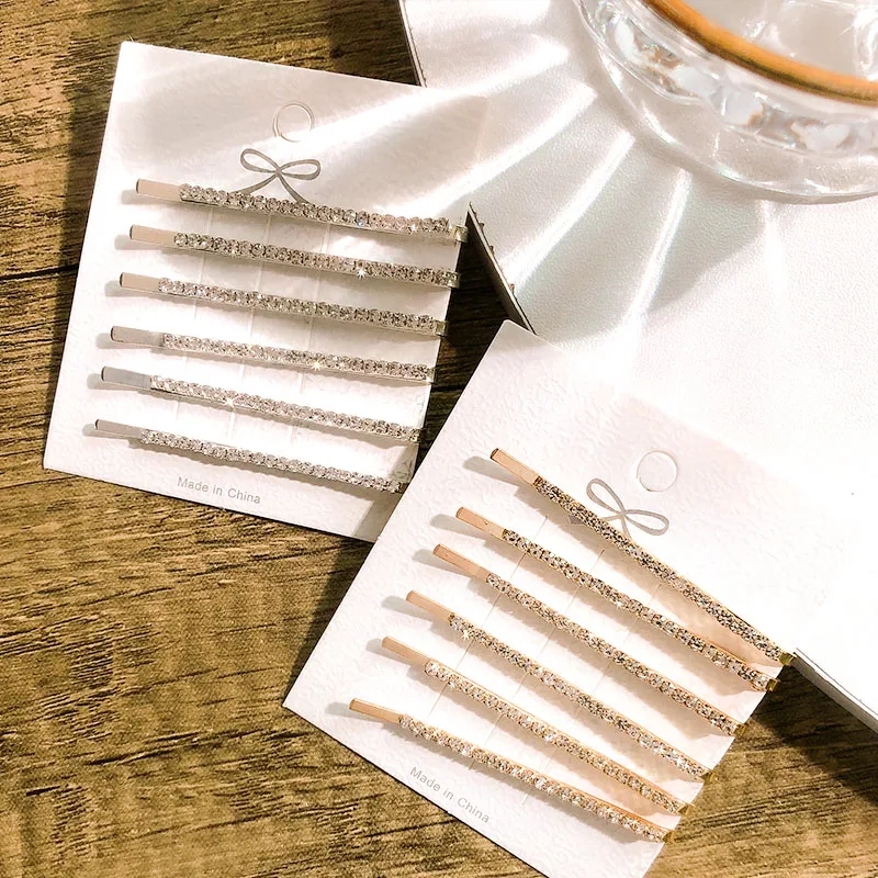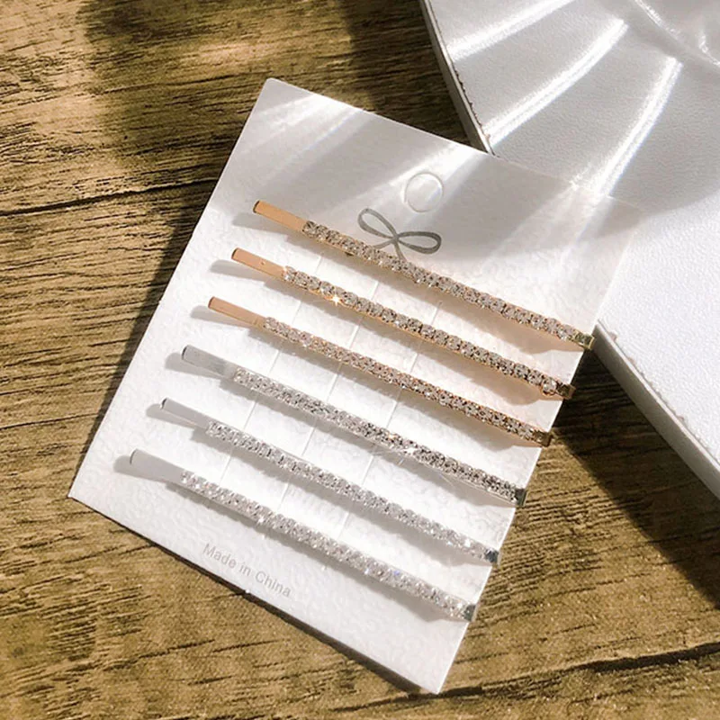 Pinces à cheveux en alliage métallique strass brillant pour femmes, accessoires simples, couleur or argent, épingles à cheveux pour filles, bijoux |