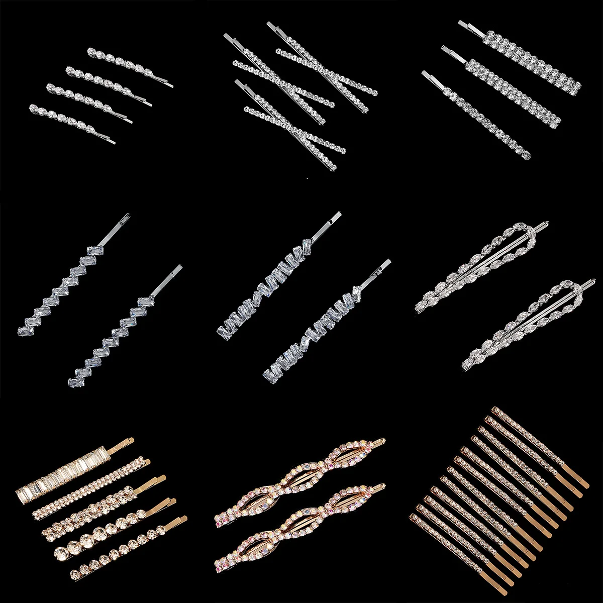 Pinces à cheveux en métal strass brillant pour femmes, épingles à cheveux simples de couleur or argent, accessoires pour cheveux de filles, bijoux