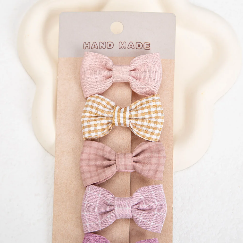 Pinces à cheveux pour bébés filles, 5 pièces/ensemble, nœuds à carreaux imprimés Froal, épingles à cheveux à carreaux vichy, couvre-chef de sécurité coréen pour enfants |