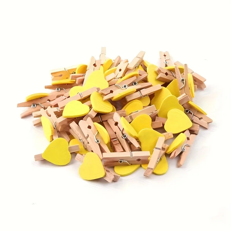 Pinces à linge en bois en forme de cœur, 50 pièces, Mini pinces décoratives pour l'artisanat de bricolage, cadeaux de mariage, présentoirs photos et décoration de la maison