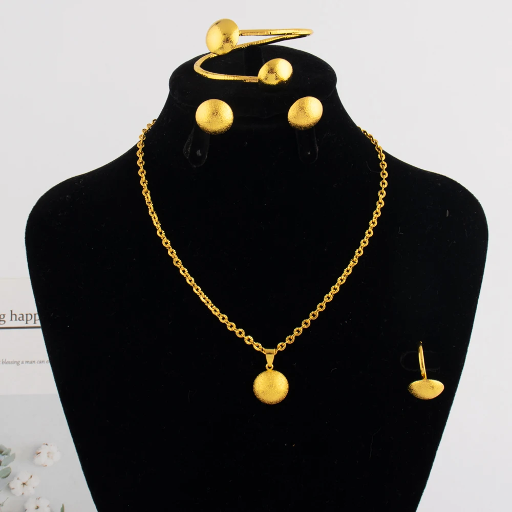 Plaqué or exquis élégant rond perle collier boucles d'oreilles bracelet bague pour femmes ensemble de bijoux pour fête mariage Banquet |