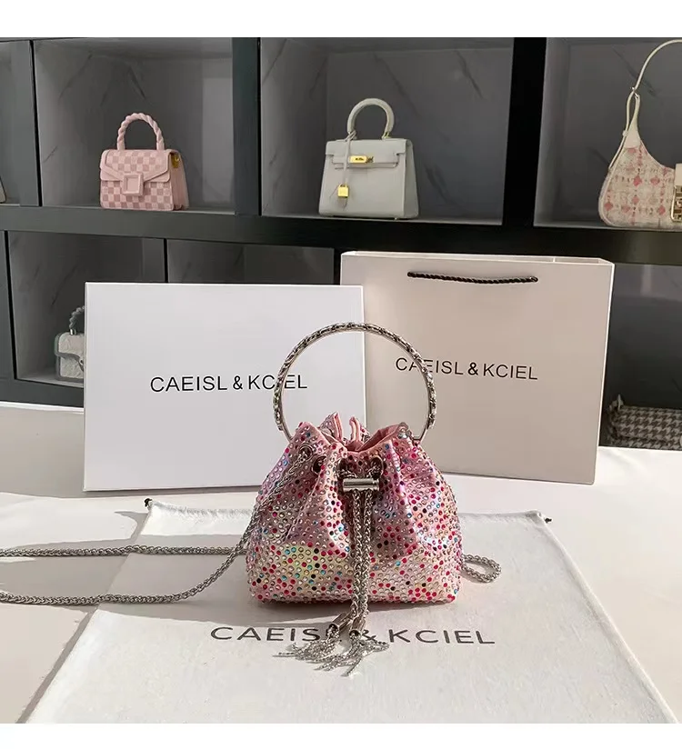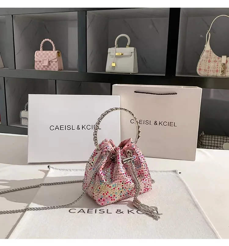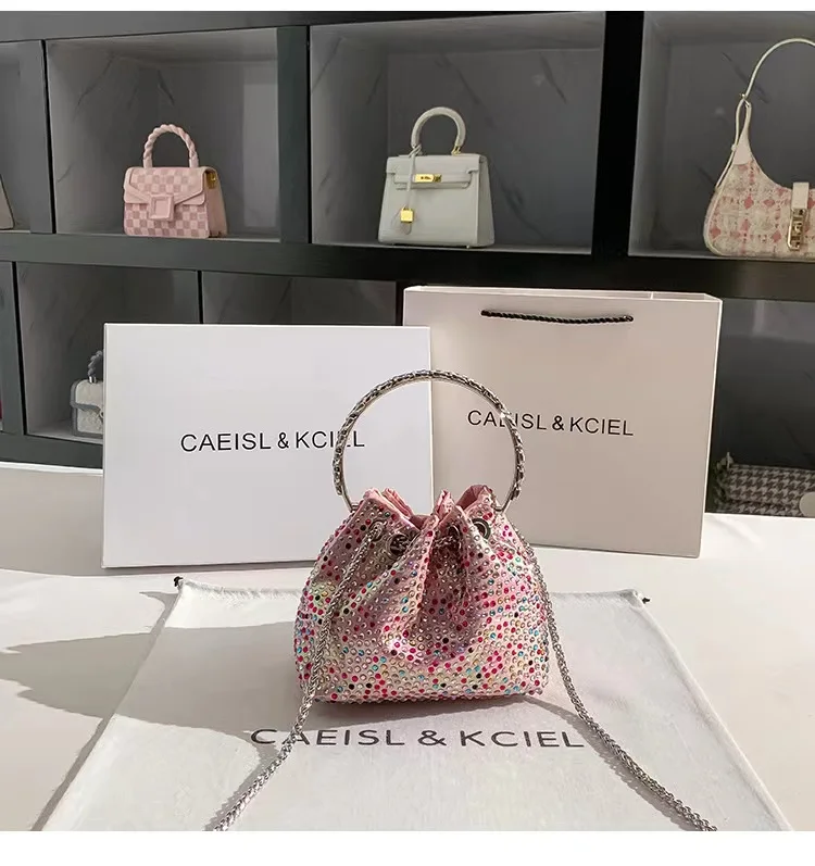 Pochette de fête de mariage, sac à main à paillettes et diamants brillants pour Banquet, sac à main de luxe pour femmes, sac de soirée à la mode, sac à bandoulière avec chaîne |