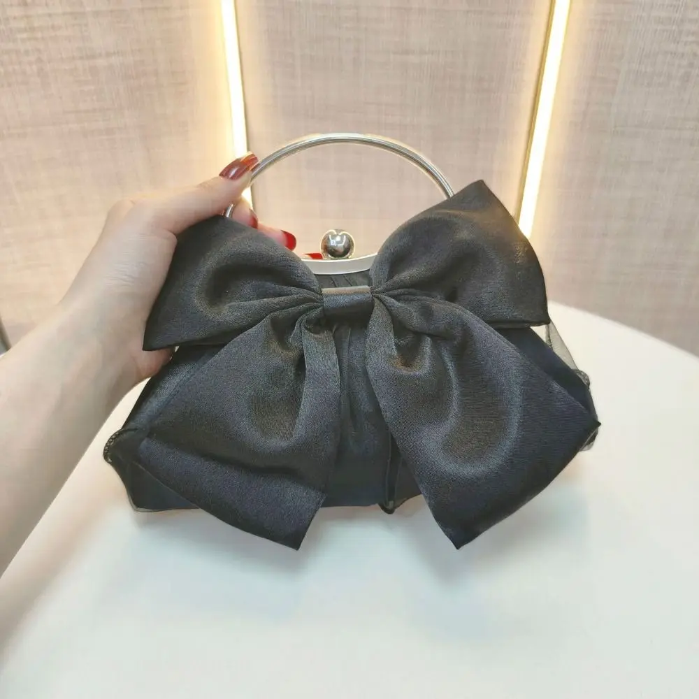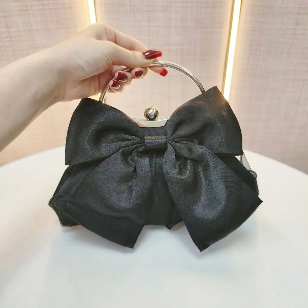 Pochette de mariée élégante de luxe, sac à main de soirée avec nœud en Satin blanc/or, poignée en métal, Style féerique, bourse de mariage pour dames