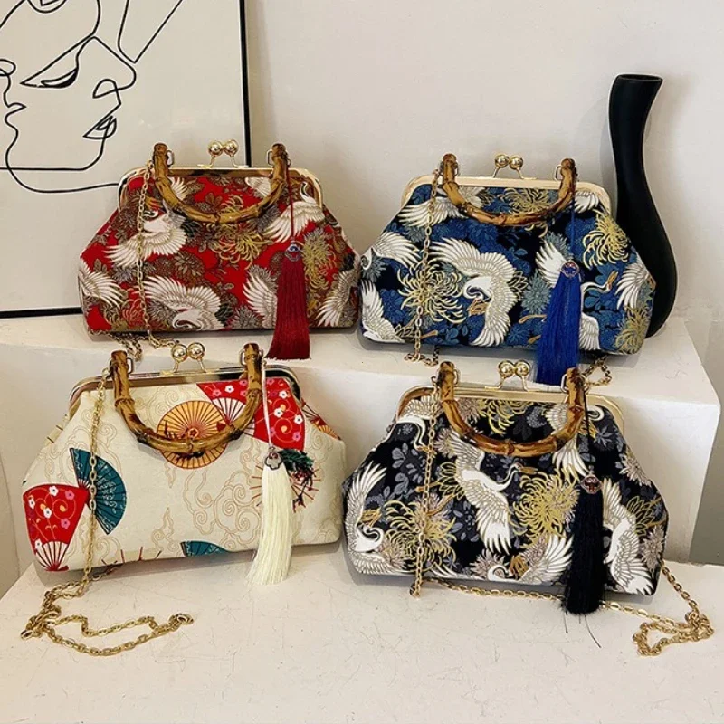 Pochette de soirée de luxe pour femmes, pochette de mariée, sac à main avec chaîne, sacs à bandoulière, petit sac à main de fête, poignée en rotin, fourre-tout |