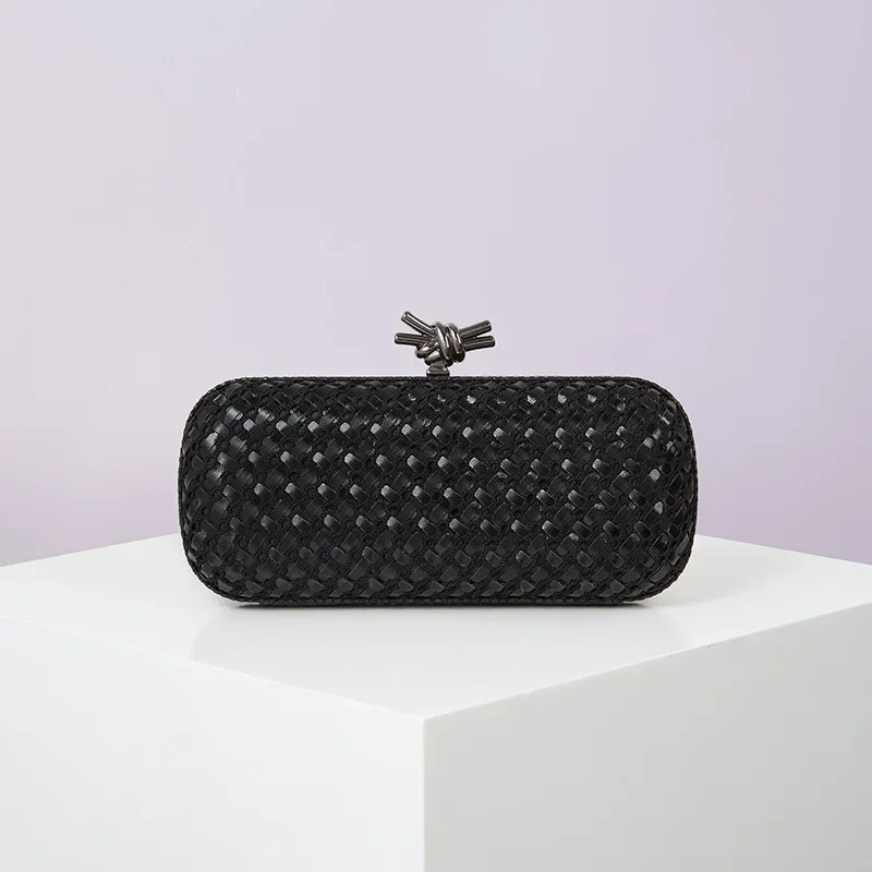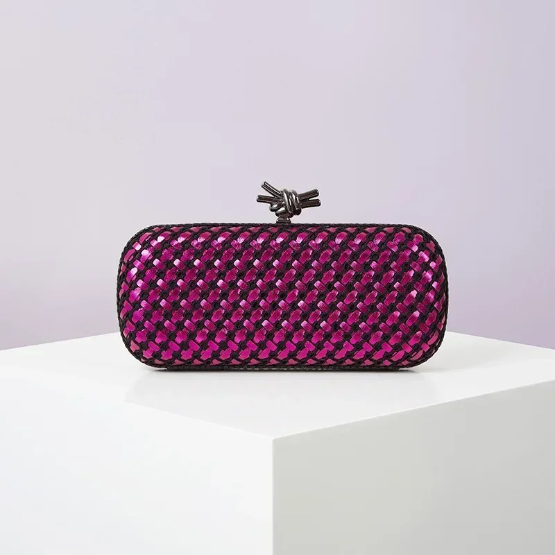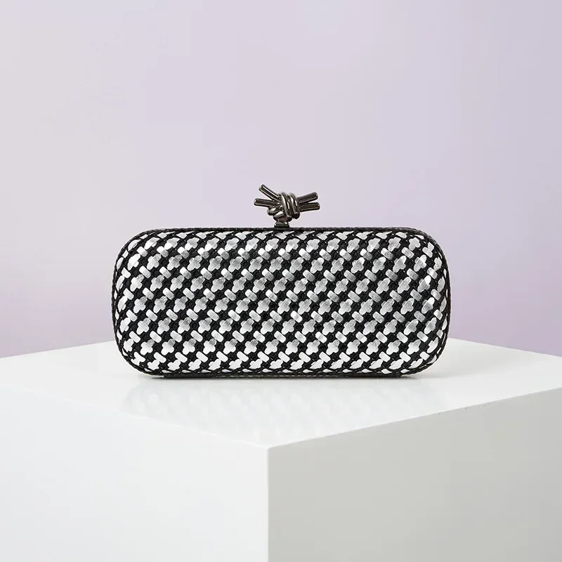Pochette de soirée en or pour femmes, sac à main tissé en cuir et ligne brillante, sac à main élégant avec nœud en métal pour dames, sac à main de fête |